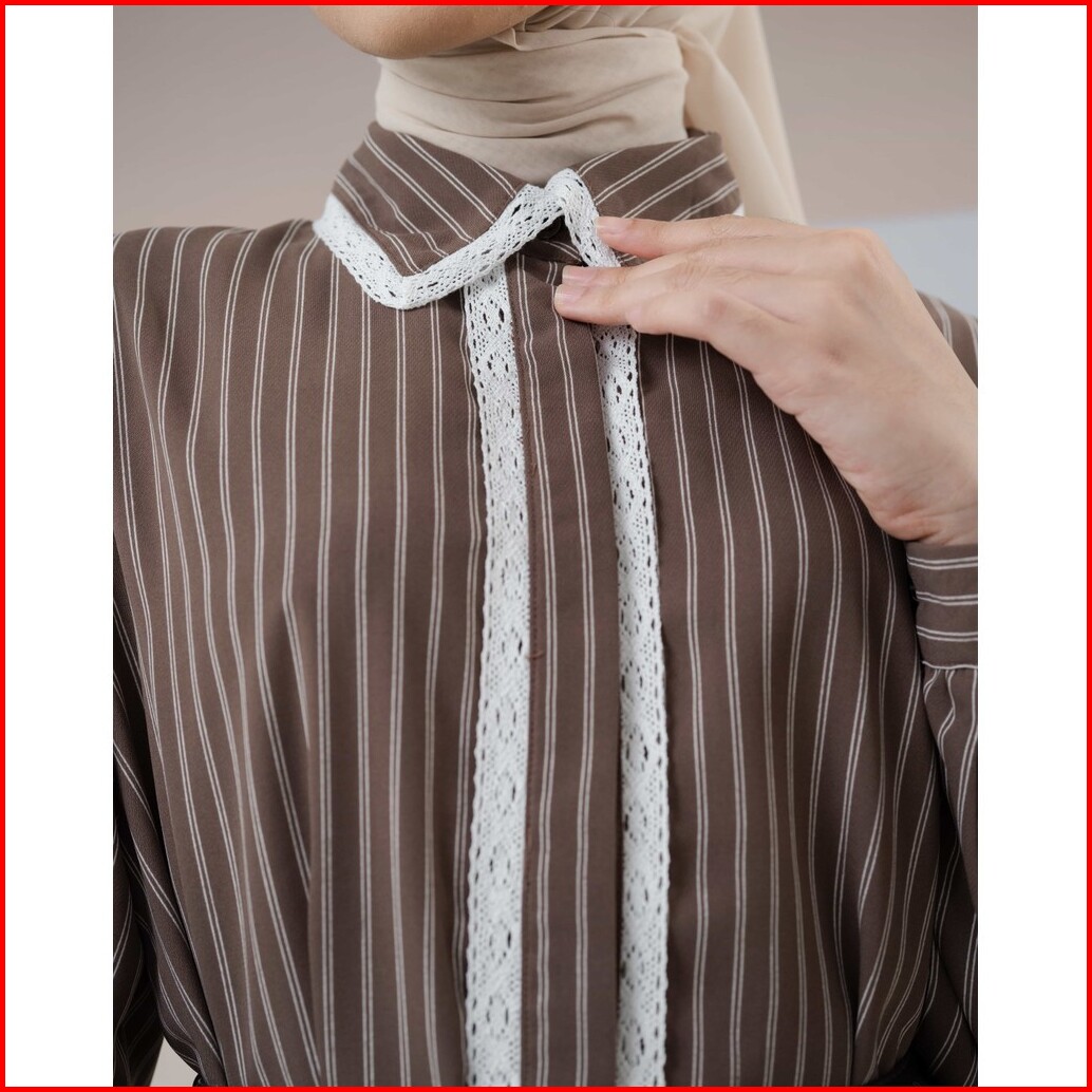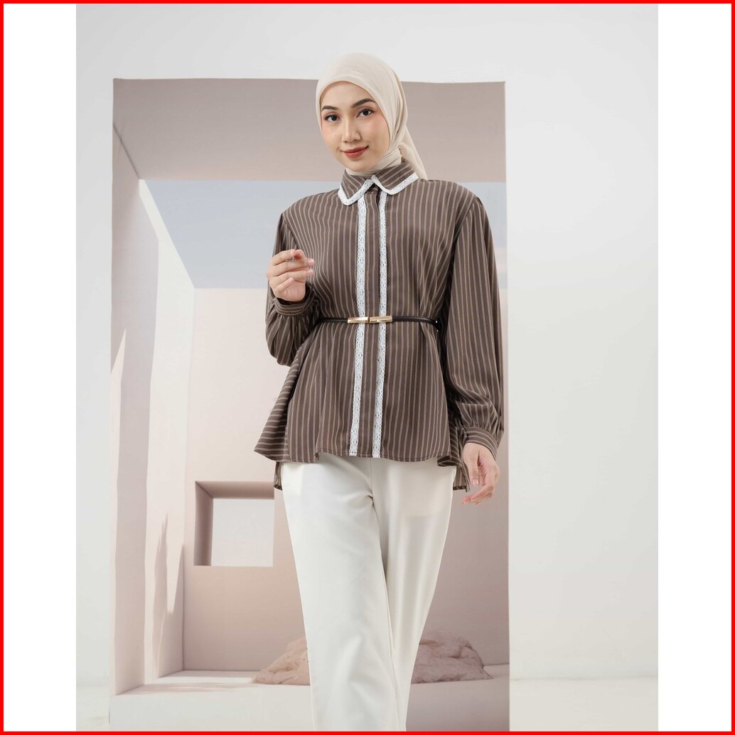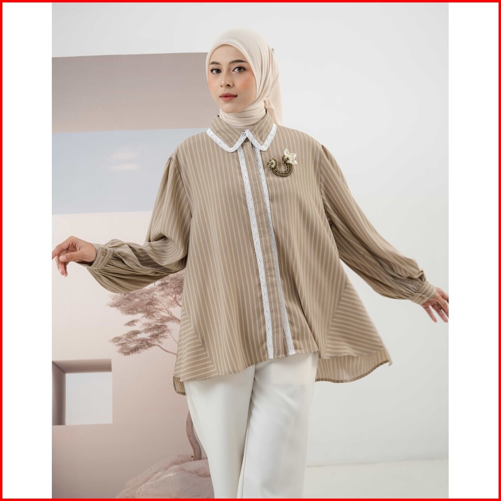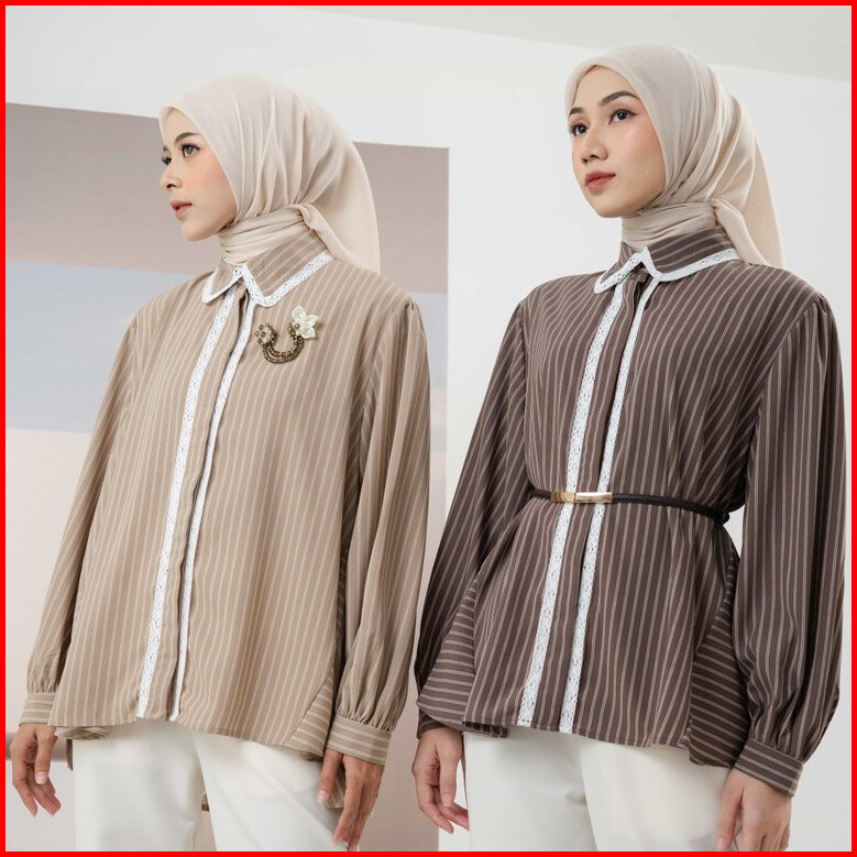 Mayoutfit Ammaya Shirt Kemeja Stripe Kombi Wanita Renda Bordir Semi Formal