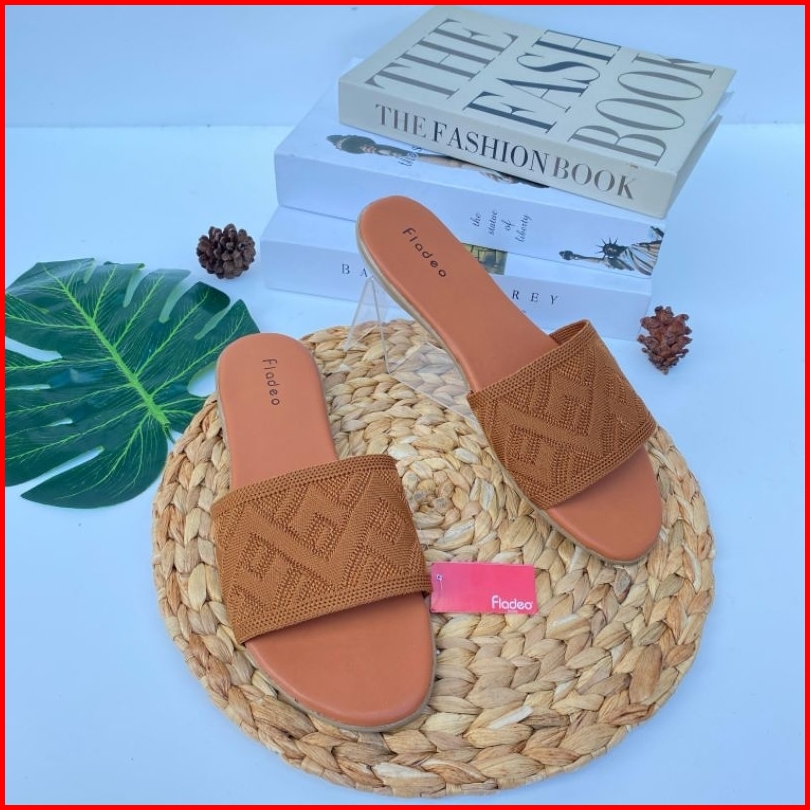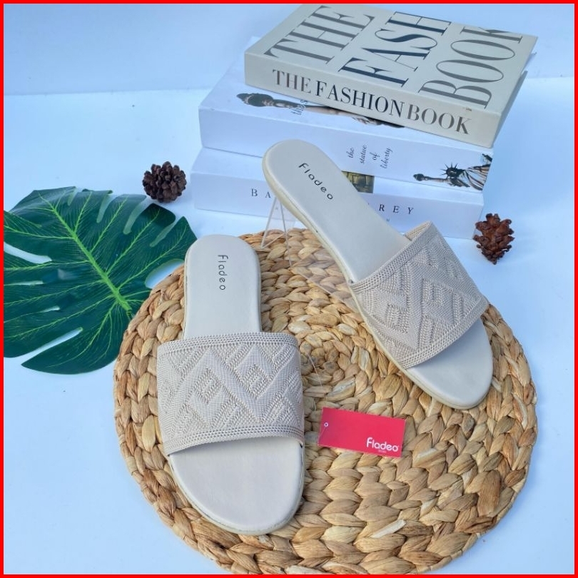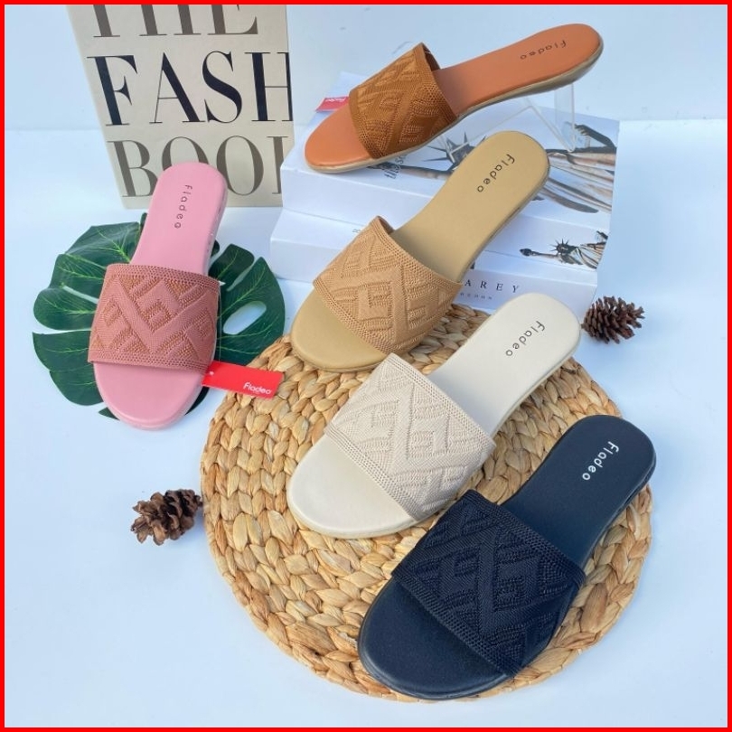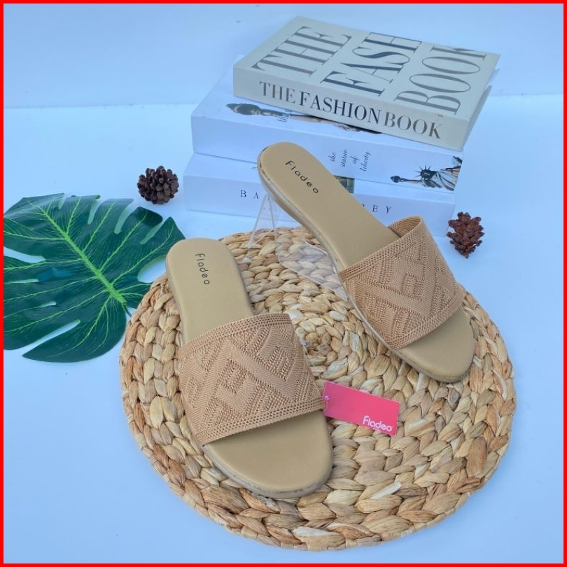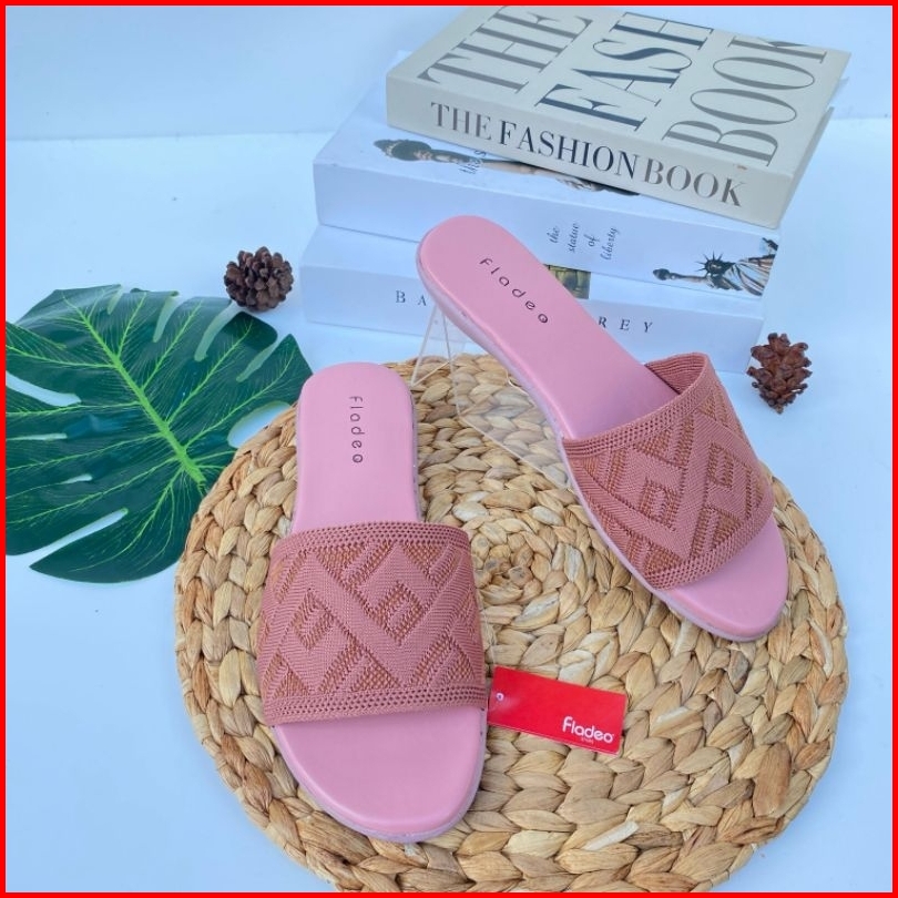 Sendal Flat Wanita Model Rajut F Sandal Slop