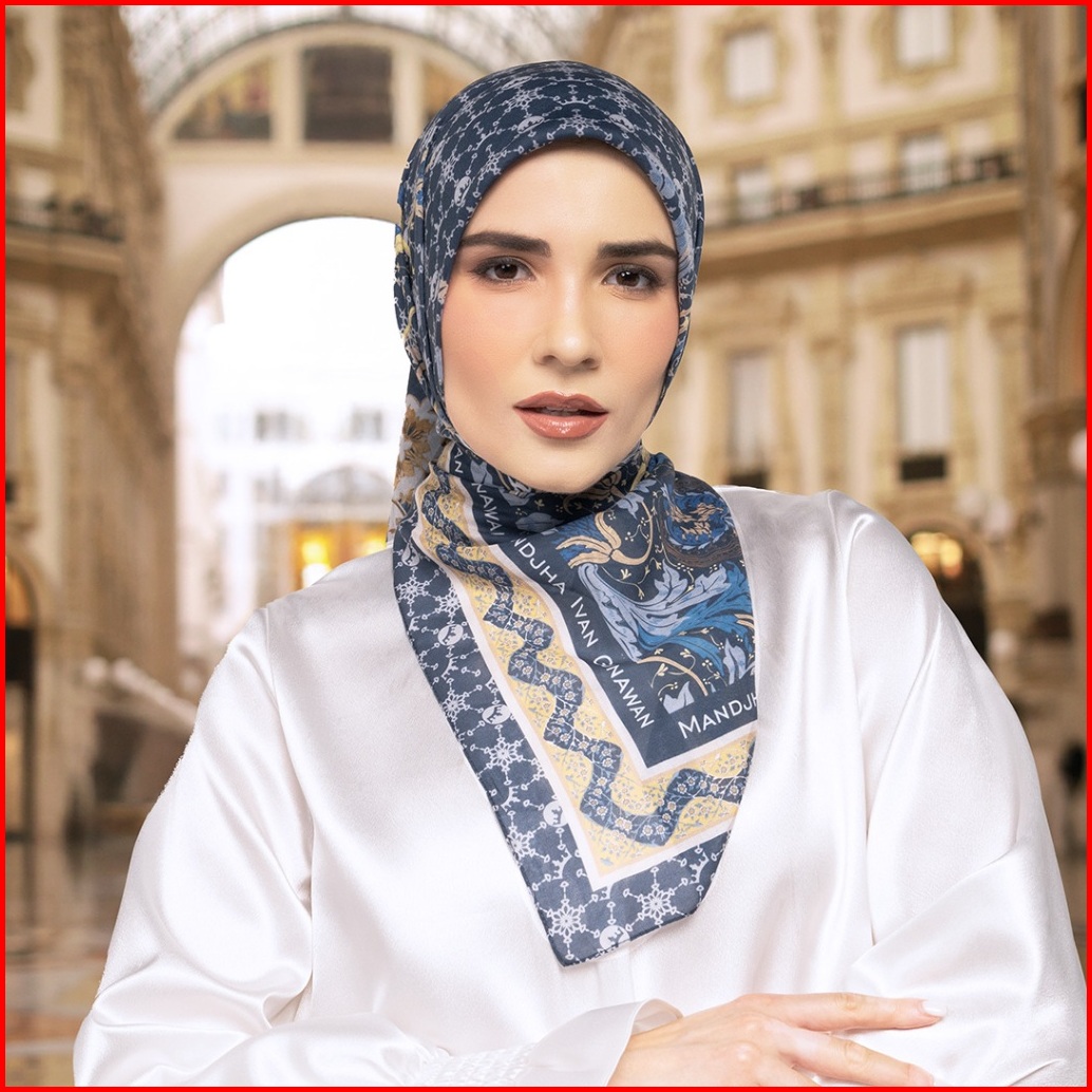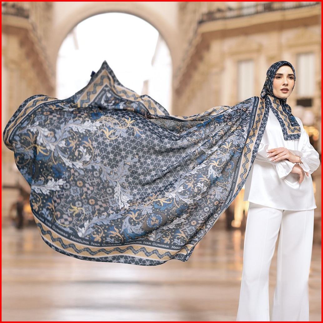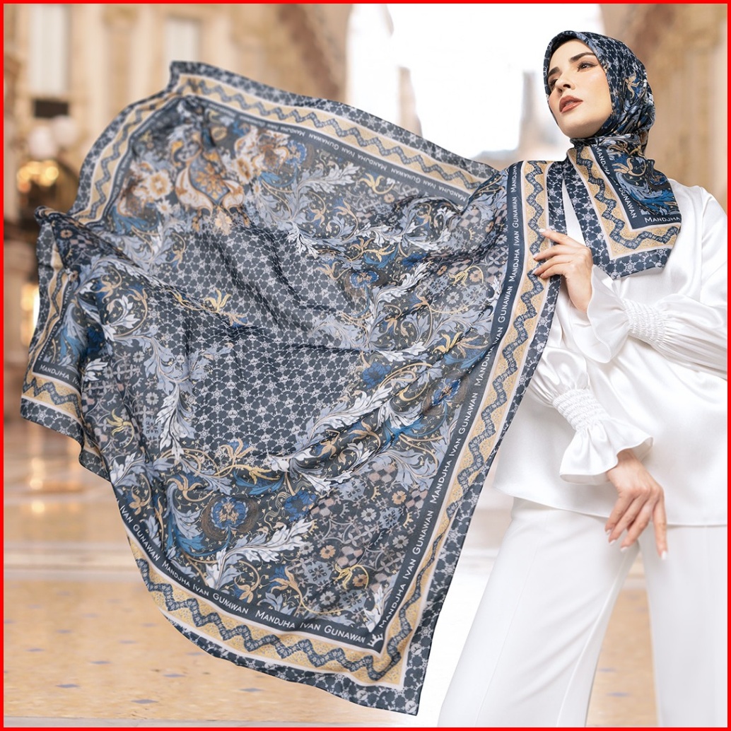 Mandjha Laurelie Navy Scarf By Ivan Gunawan - Jilbab Hijab Segi Empat Motif Original Mandjha