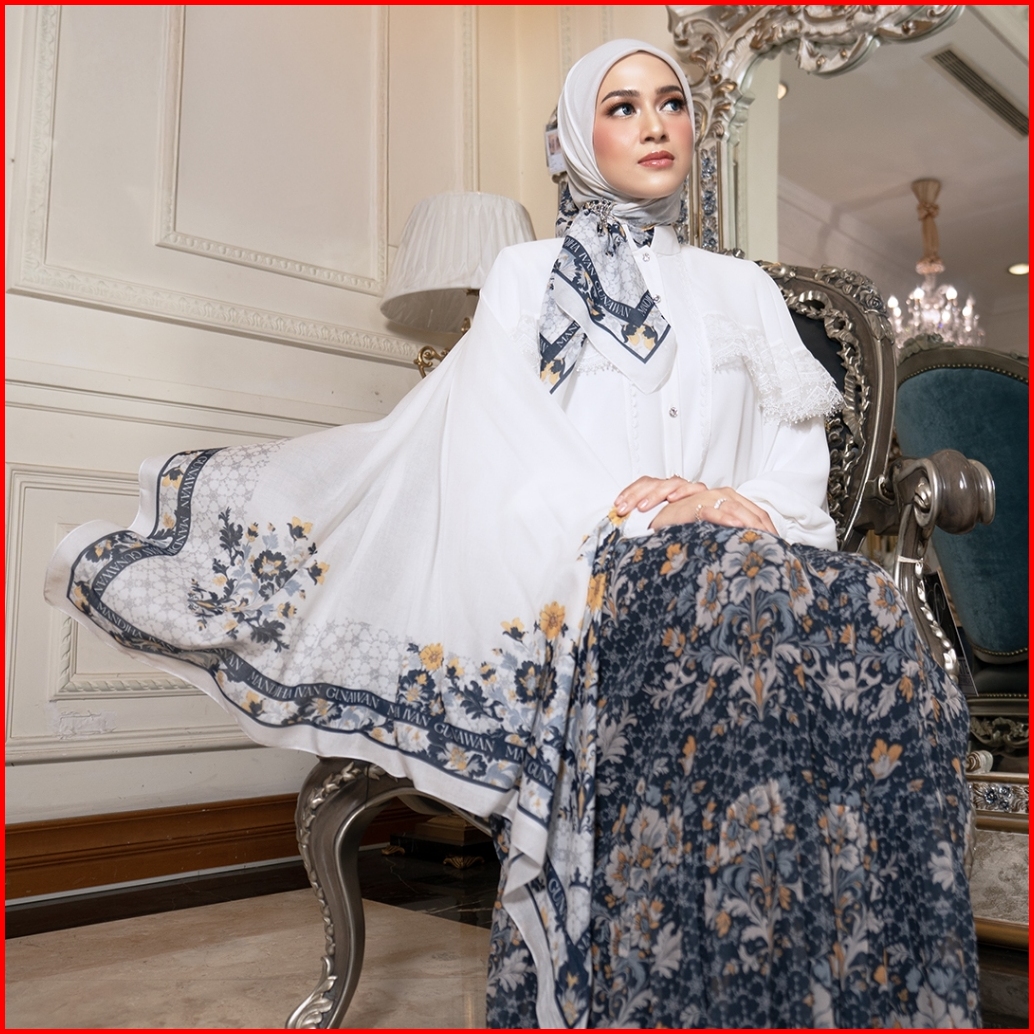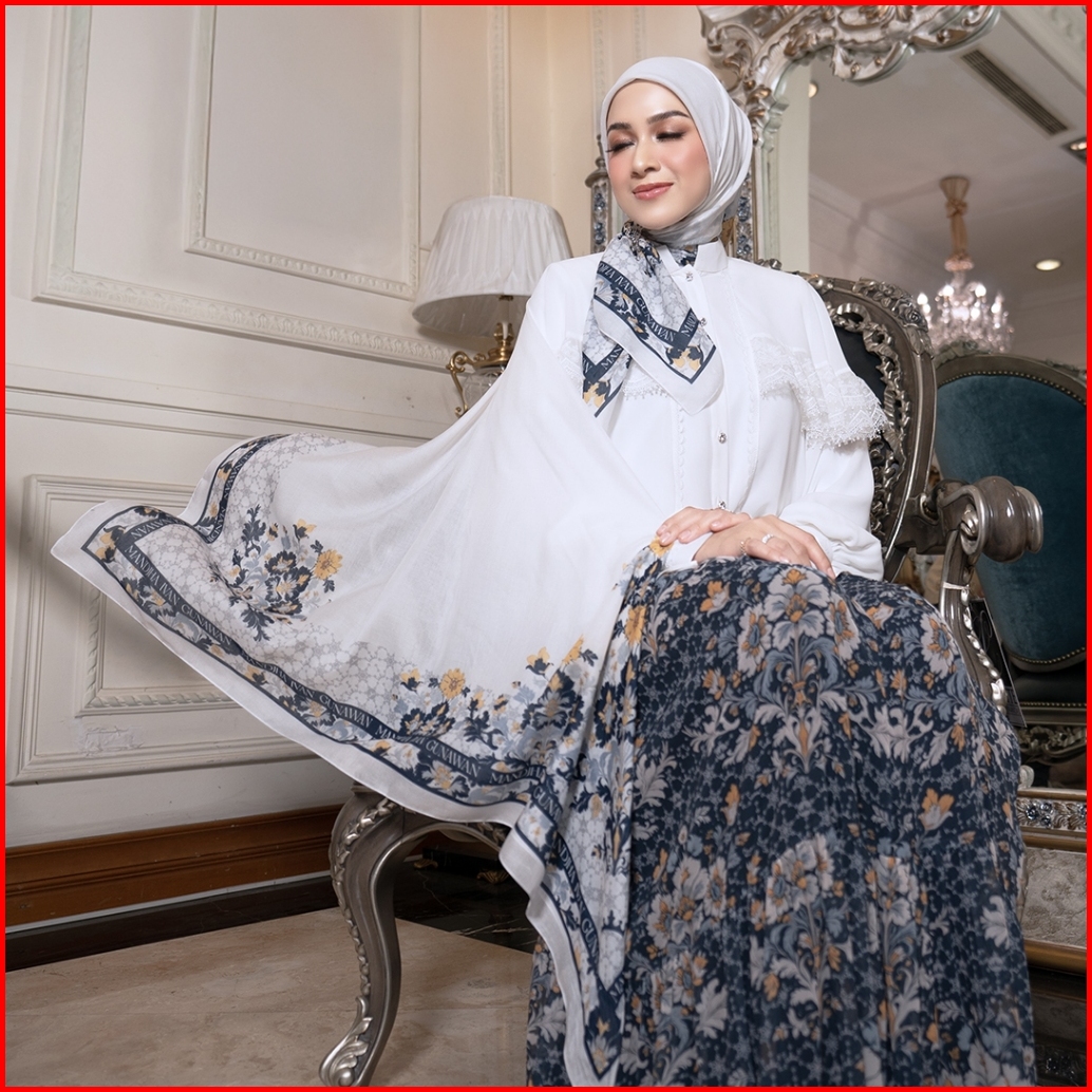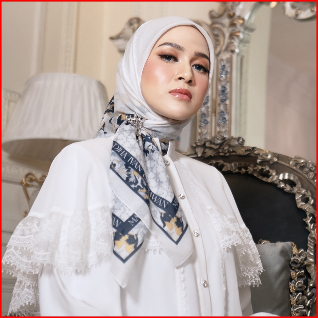 Mandjha Evelyne White Scarf By Ivan Gunawan - Jilbab Hijab Segi Empat Motif Original Mandjha