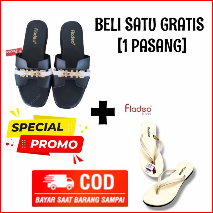 Beli 1 Gratis 1 Sandal Wanita Slop Gesper Fladeo Japit Fladeo Lebih Hemat Sendal Cewek Flat Slip On Lebih Murah Kekinian