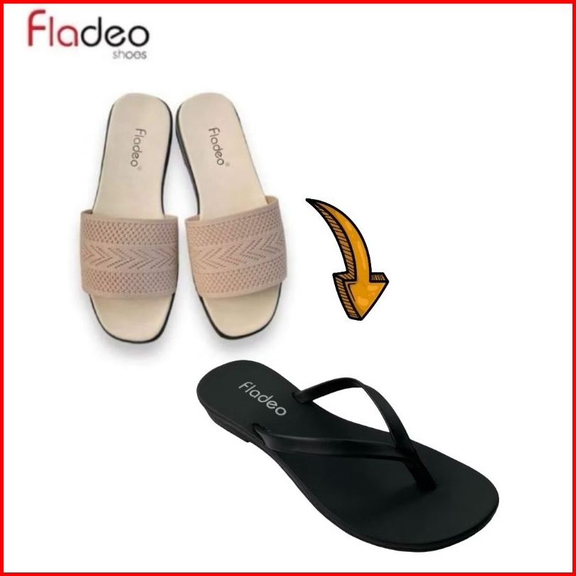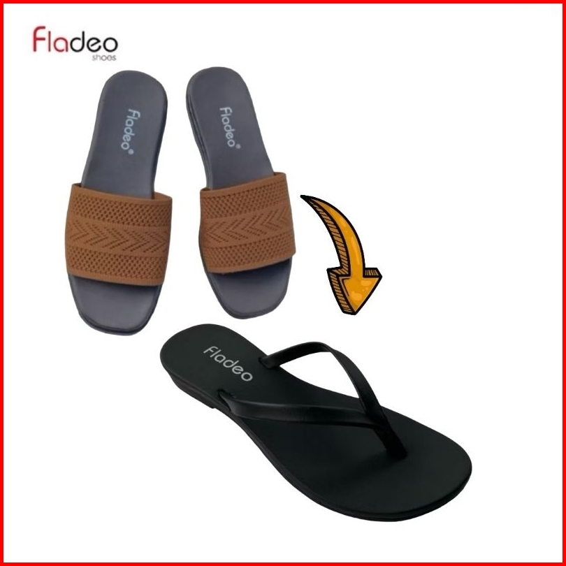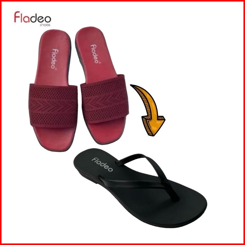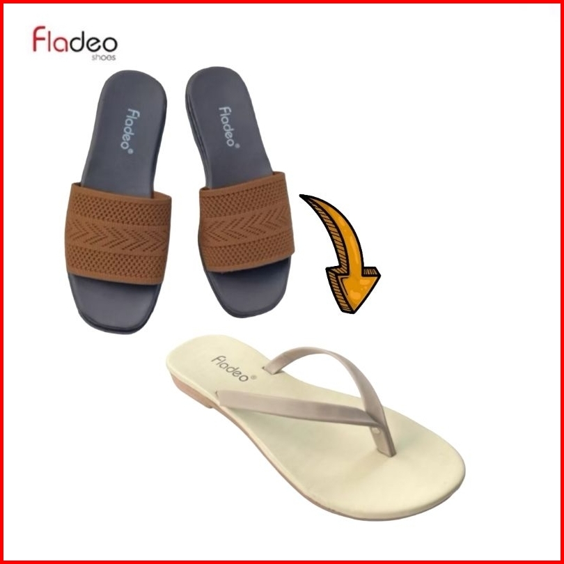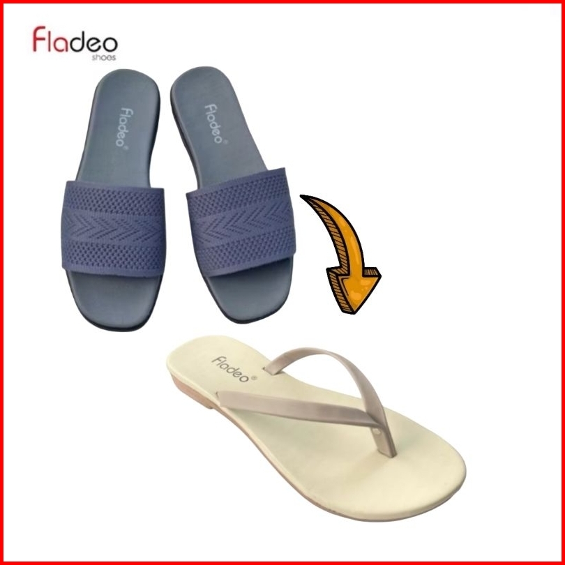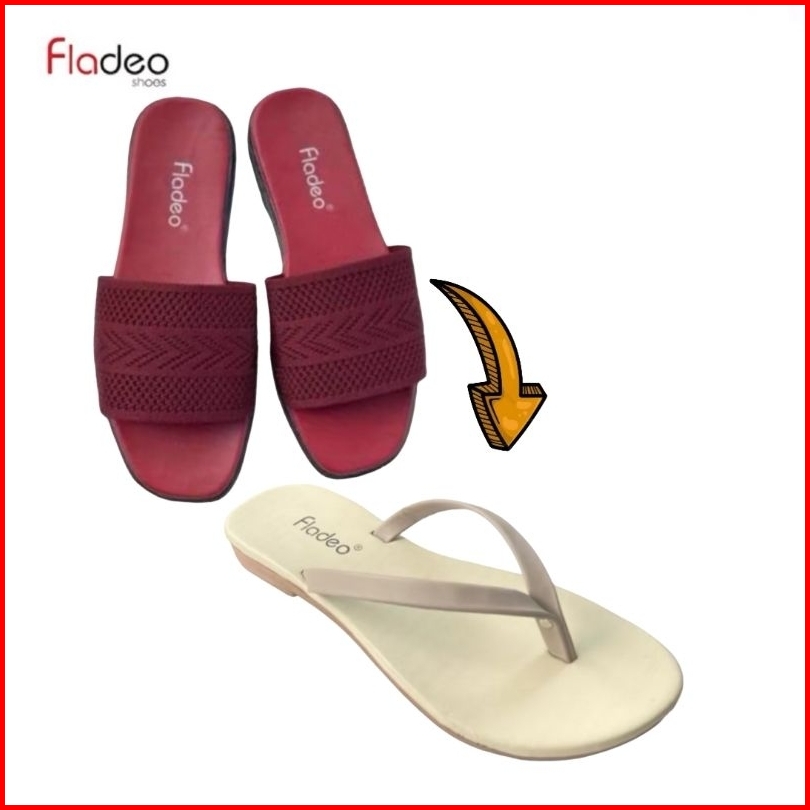Promo Beli 1 Gratis 1 Sandal Slop Fladeo Rajut Bonus Japit Flat Sandal Wanita Sendal Cewek Teplek Original Wanita Terbar