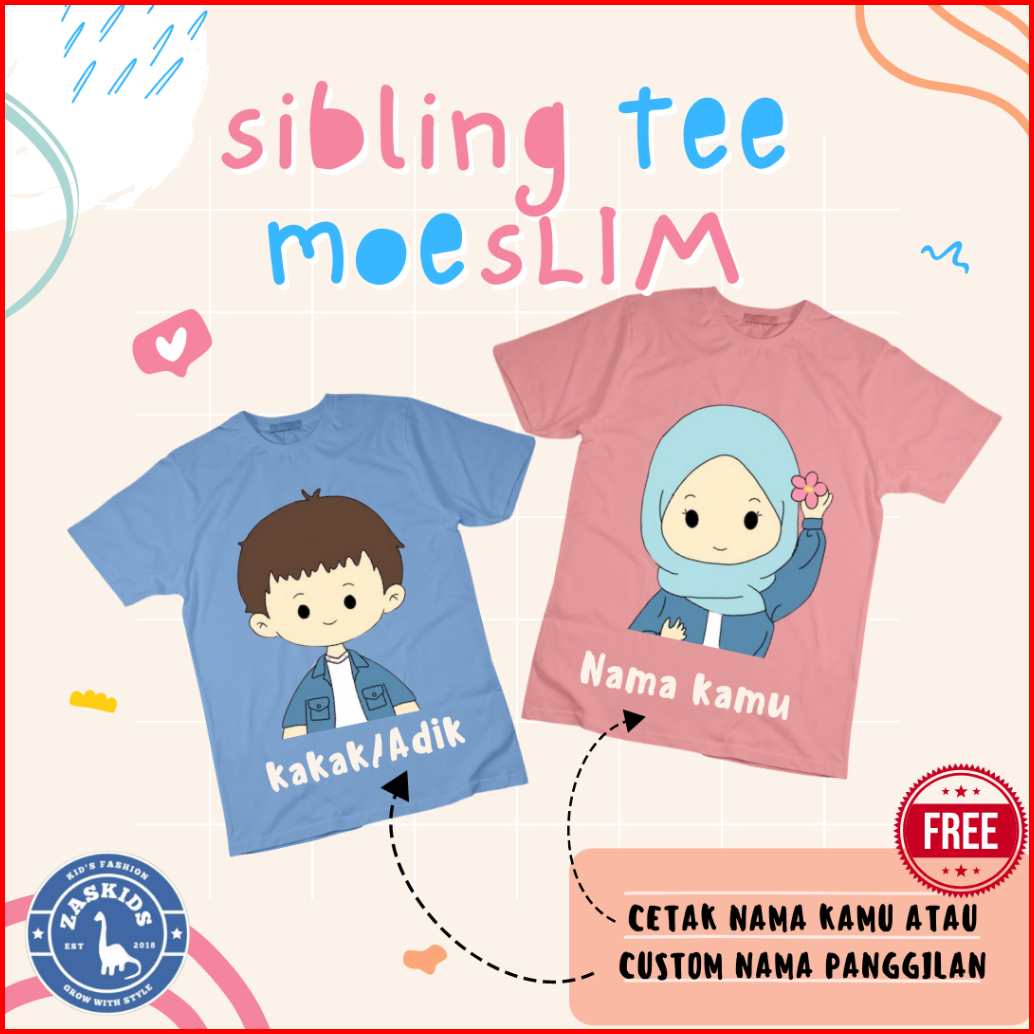 Kaos Anak Moeslim Series Couple Adik Kakak Sibling Tee Zaskids Baju Atasan Anak Moeslim Series Lengan Pendek Laki-laki D
