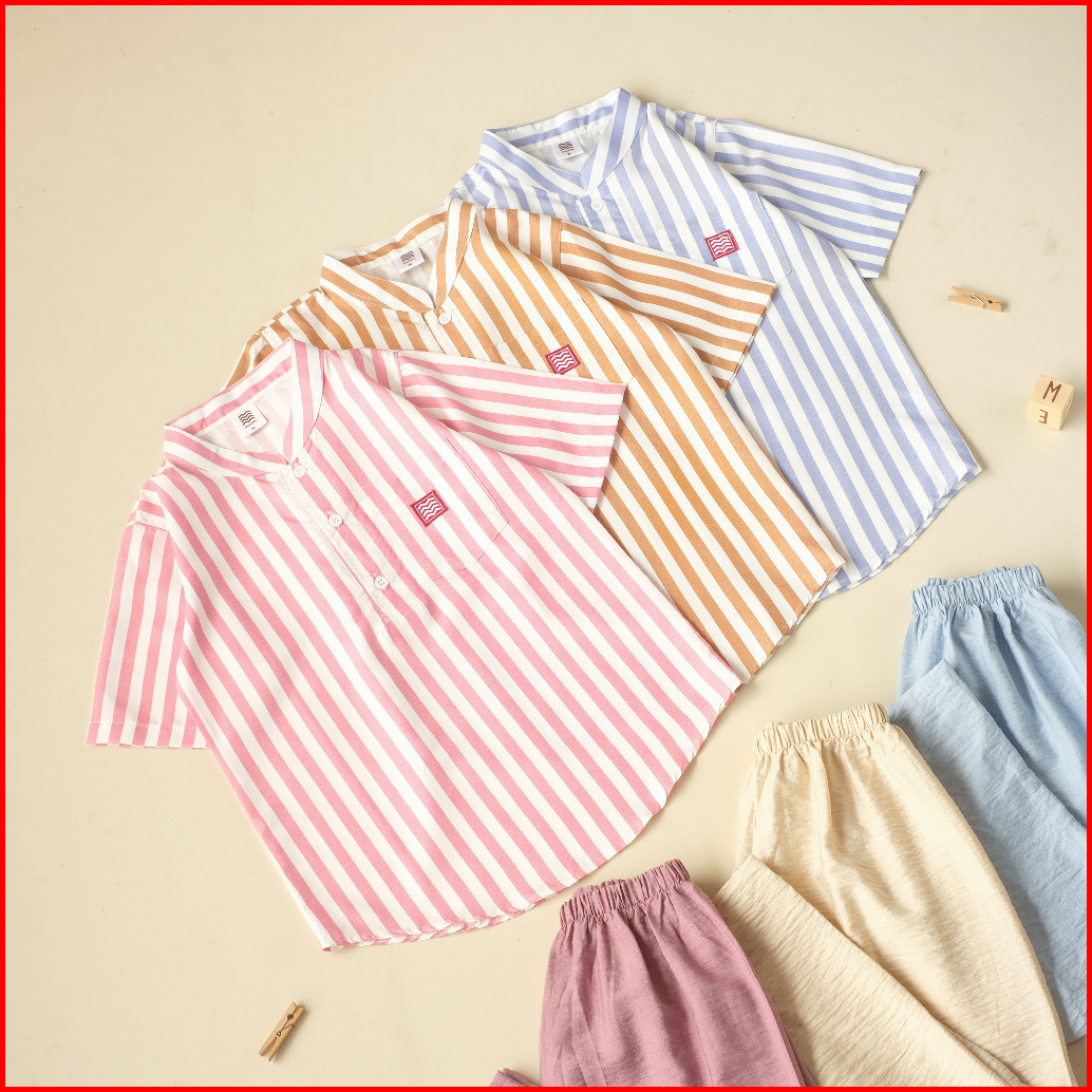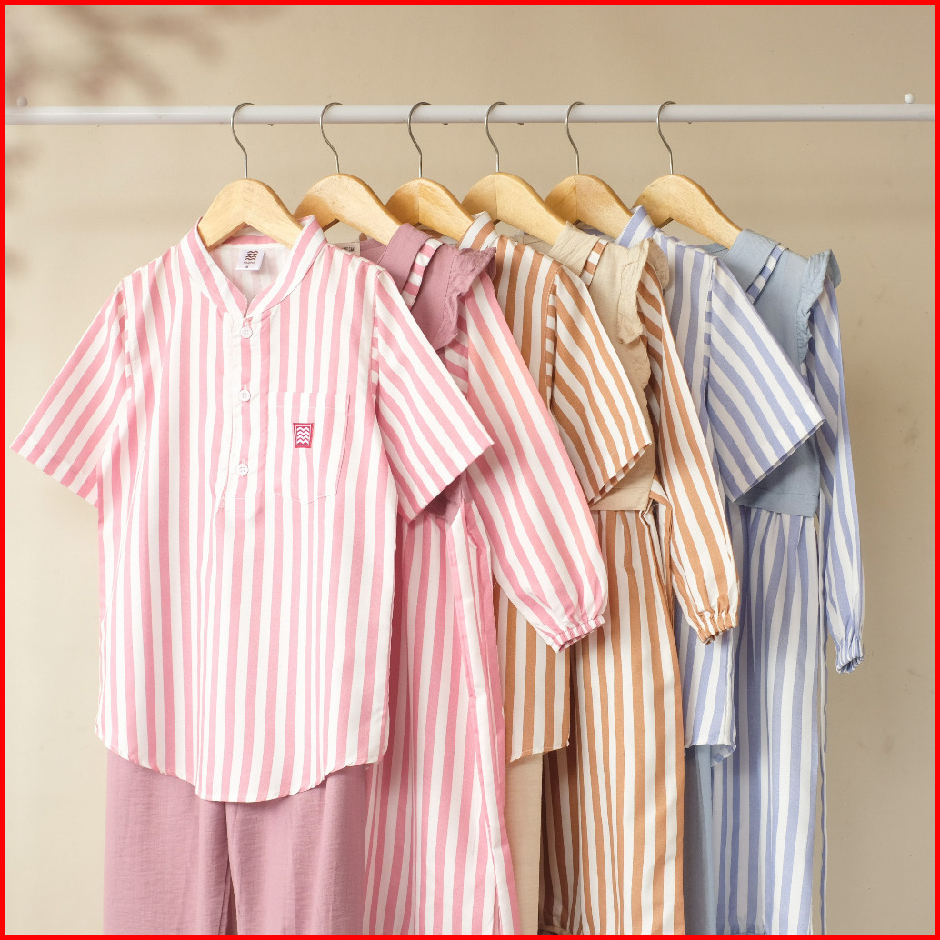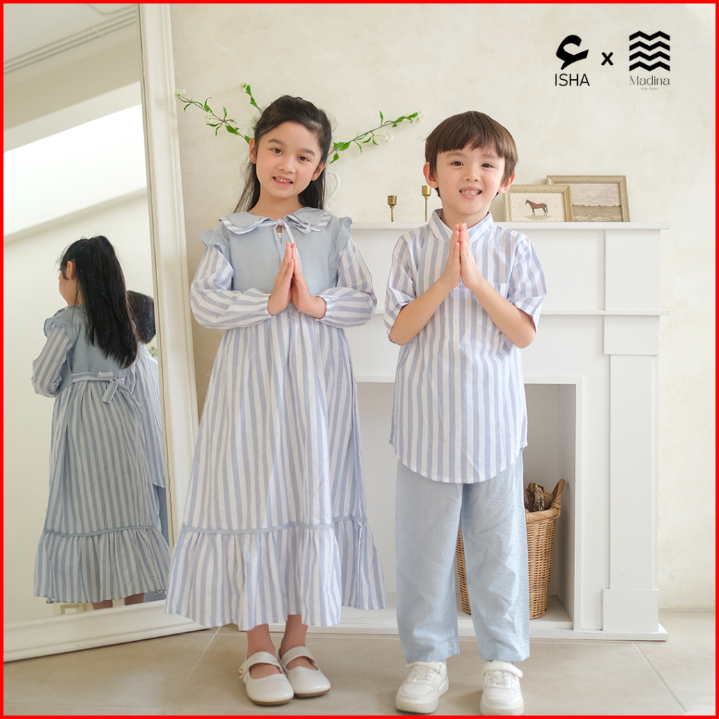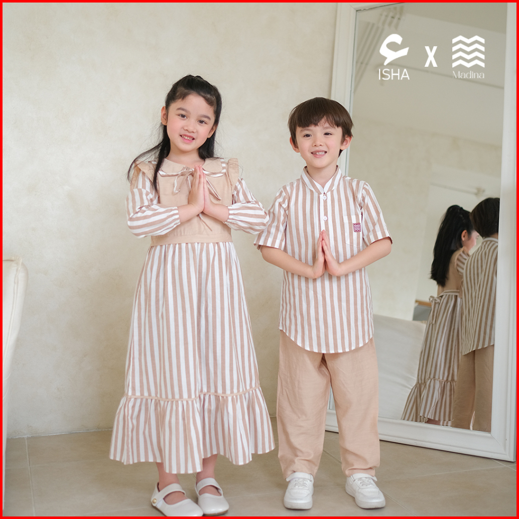 Madina X Isha - Baju Couple Koko Anak Laki Laki Dress Anak Perempuan 1-12 Tahun Motif Salur Stripe