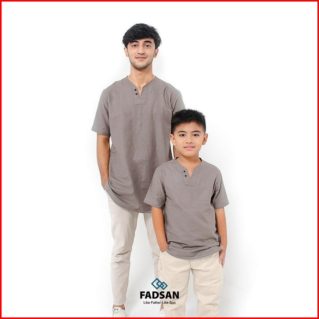 Baju Koko Couple Ayah Anak Daily Wear Anti Luntur Jahitan Rapi Warna Abu Mono Series - Fadsan