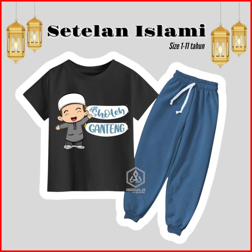Setelan Anak Laki-laki Usia 1-11 Tahun - Baju Anak Laki- Laki Motif Islami Bahan Kaos Combed