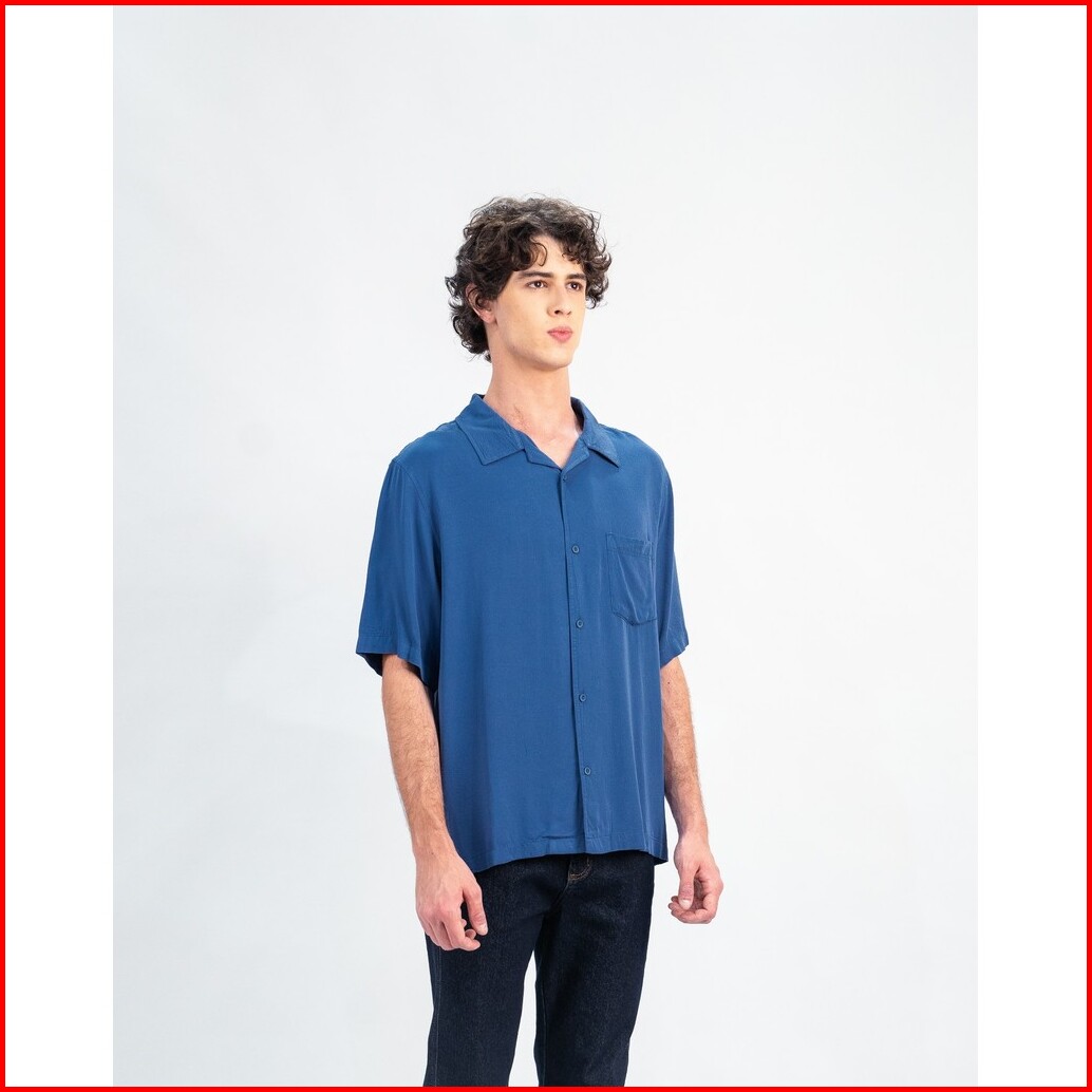 Erigo Short Shirt Pocket Dakota Blue - Kemeja Lengan Pendek Rayon Unisex