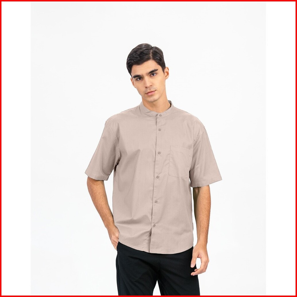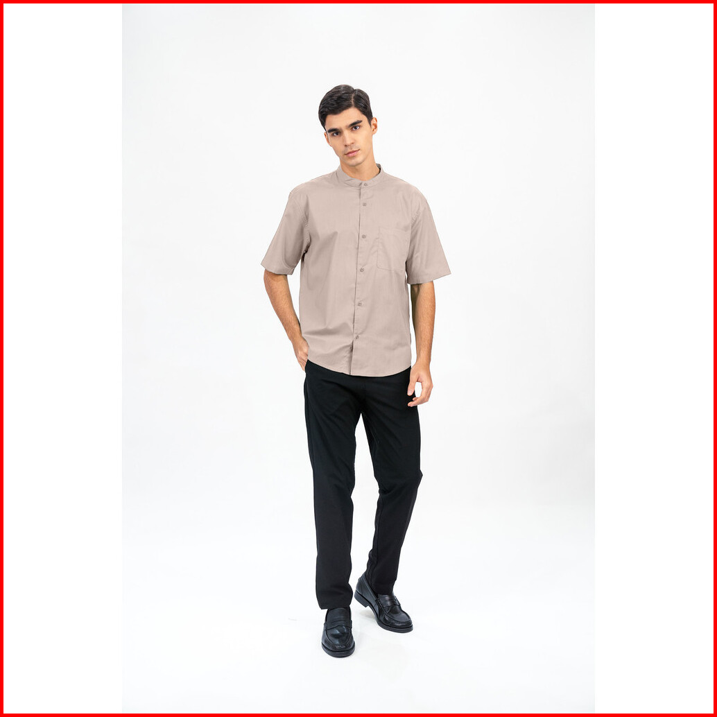 Erigo Shanghai Short Sleeve Basic Fauzan Brown - Kemeja Koko Lengan Pendek Unisex