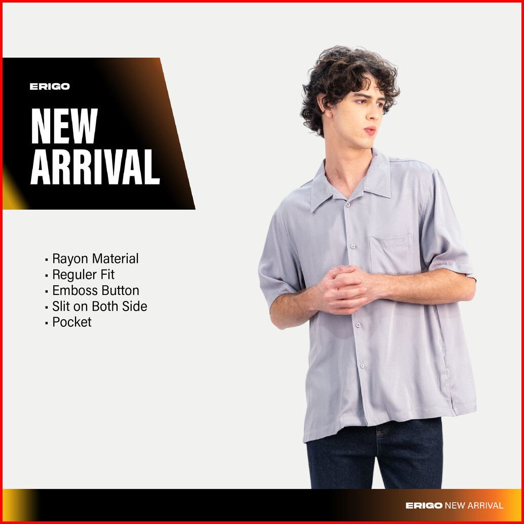 Erigo Short Shirt Pocket Dalvie Grey - Kemeja Lengan Pendek Rayon Unisex