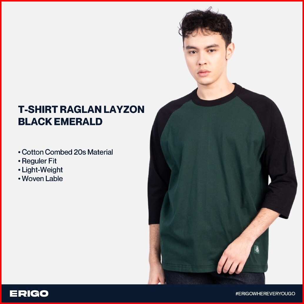 Erigo T-shirt Raglan Layzon Black Emerald Unisex