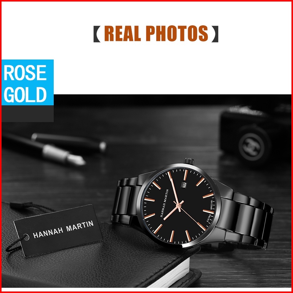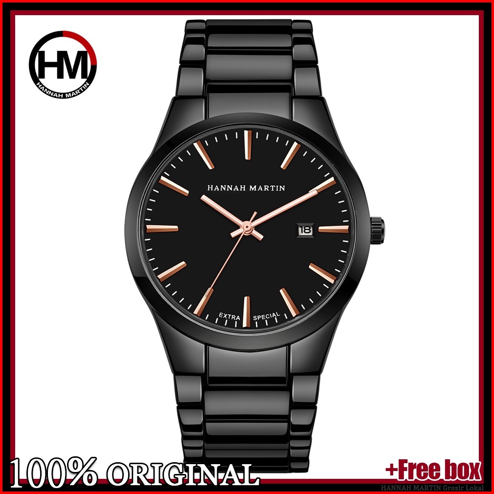 Jam Tangan Pria Hannah Martin 100 Original Business Cowok Kado Ulang Tahun Jam Rantai Anti Air Quartz Laki Laki Arloji T