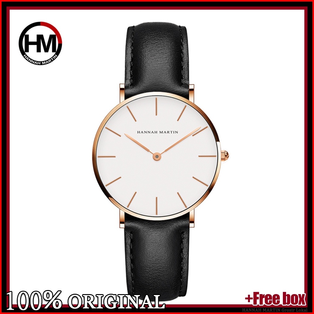 Jam Tangan Wanita Hannah Martin 100 Original Cewek Quartz Kulit Anti Air Jam Tangan Couple Women Watch Perempuan Arloji