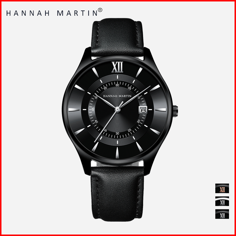 Hannah Martin Jam Tangan Pria 100 Original Model Terbaru Keren Quartz Cowok Kulit Anti Air Men Arloji 1231