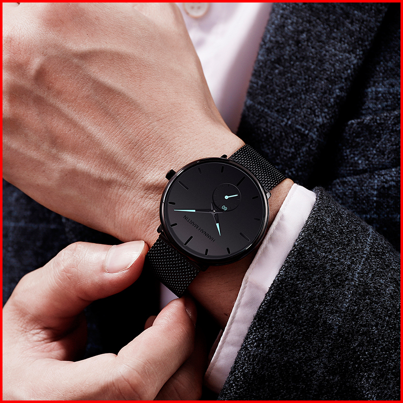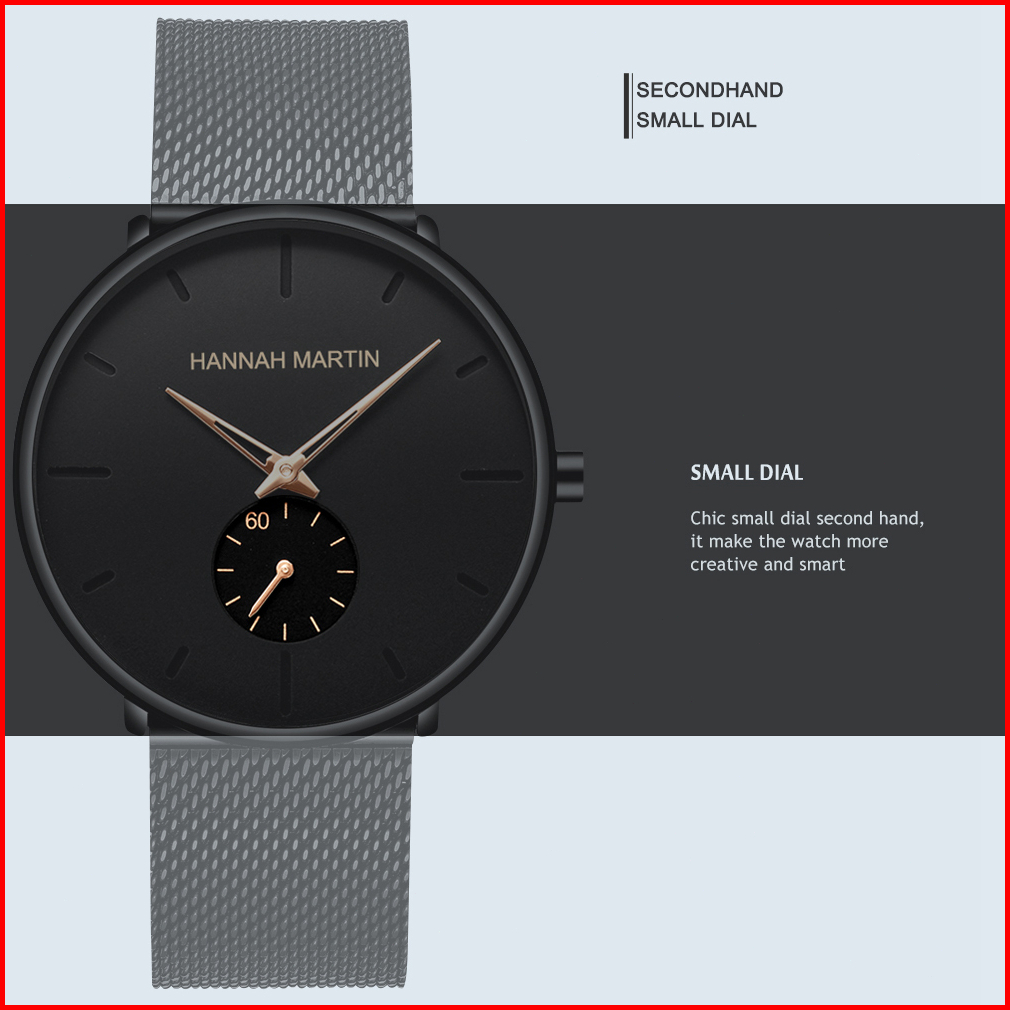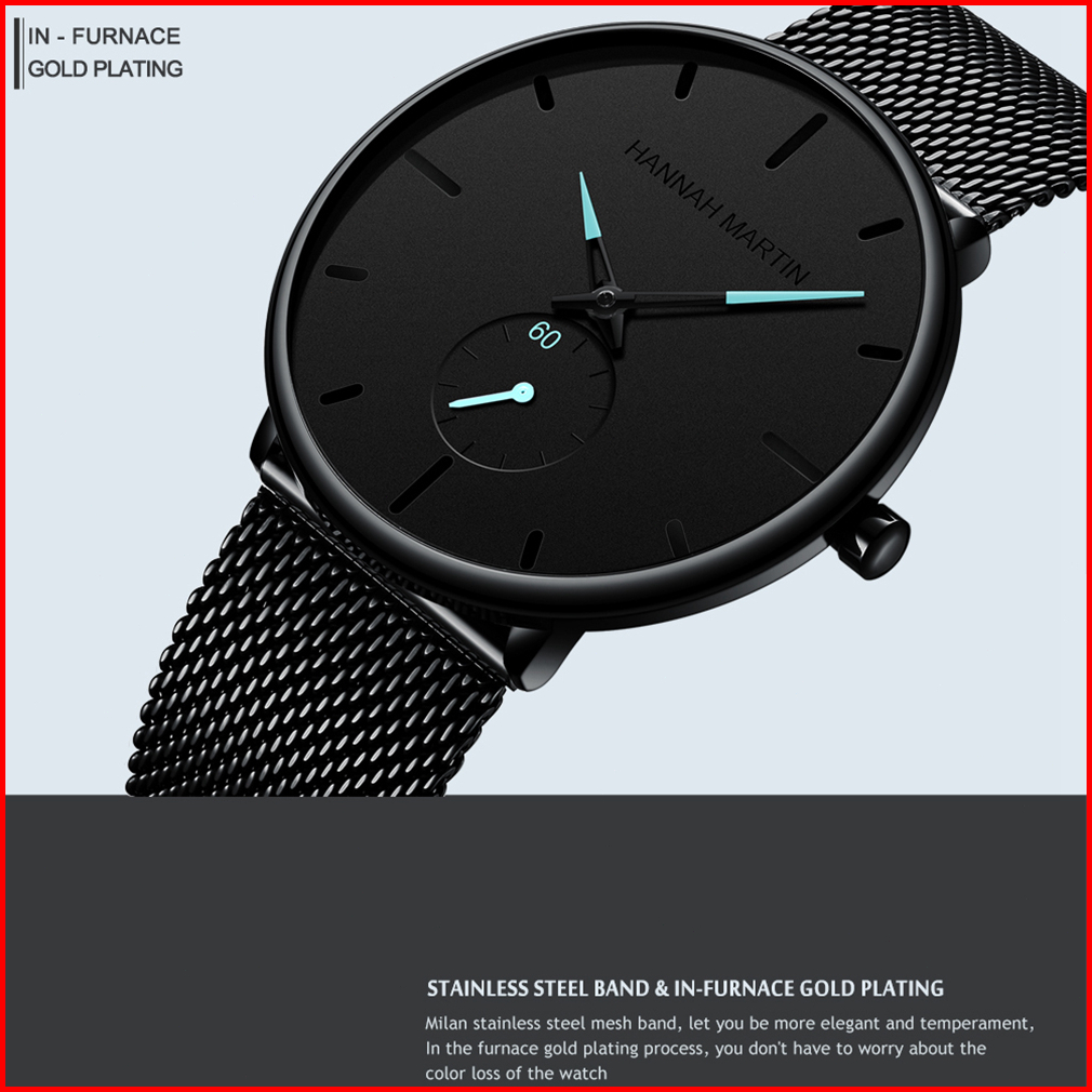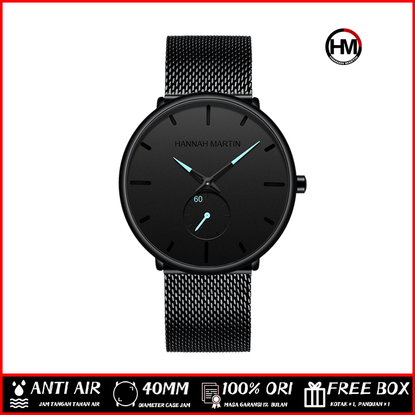 Hannah Martin Jam Tangan Pria Sangat Tipis 100 Original Korea Fashion Cowok Anti Air Quartz Arloji Simple Men Watch 100g