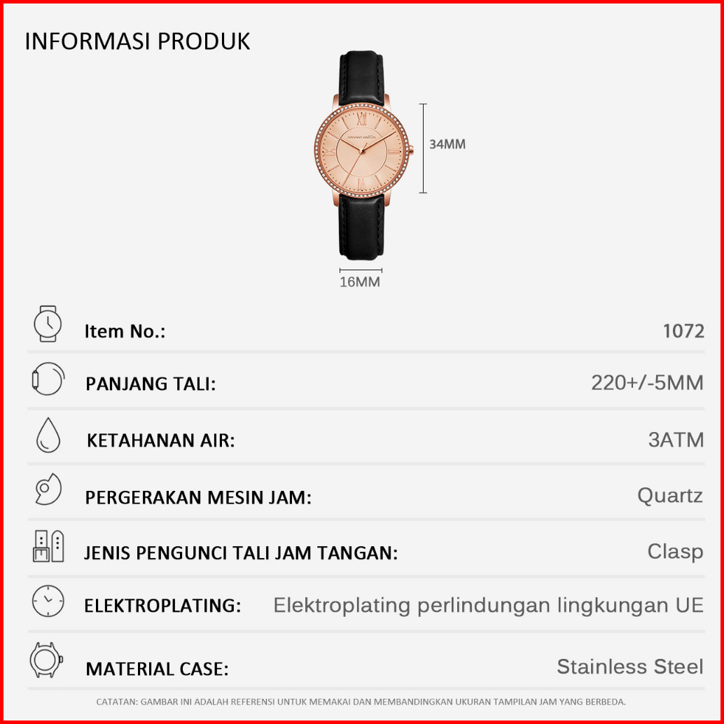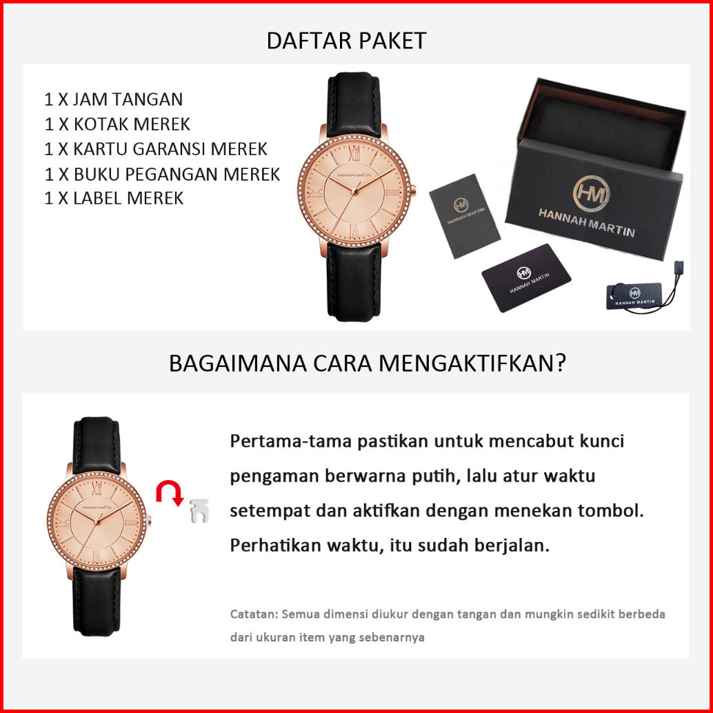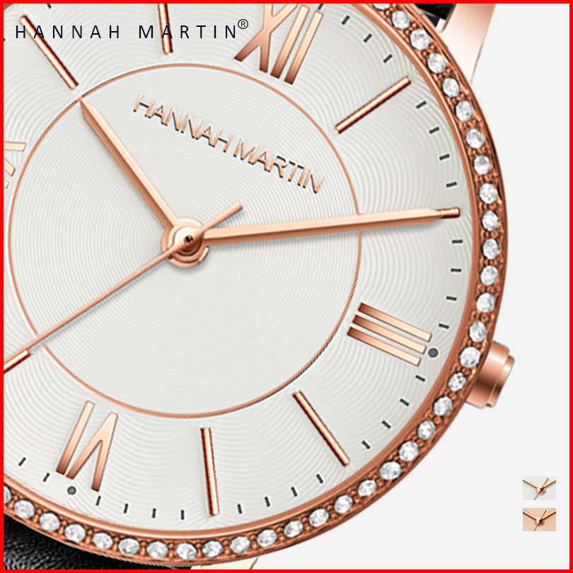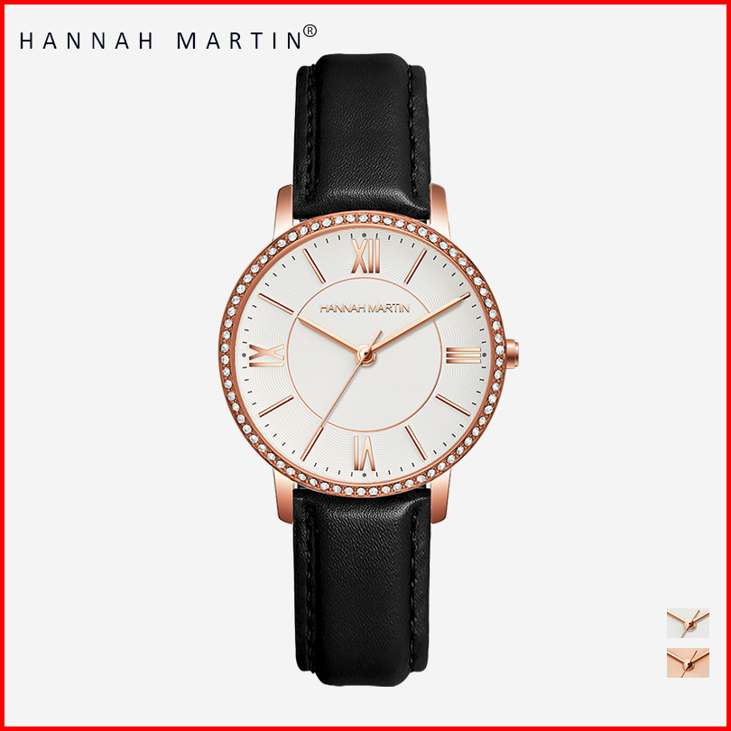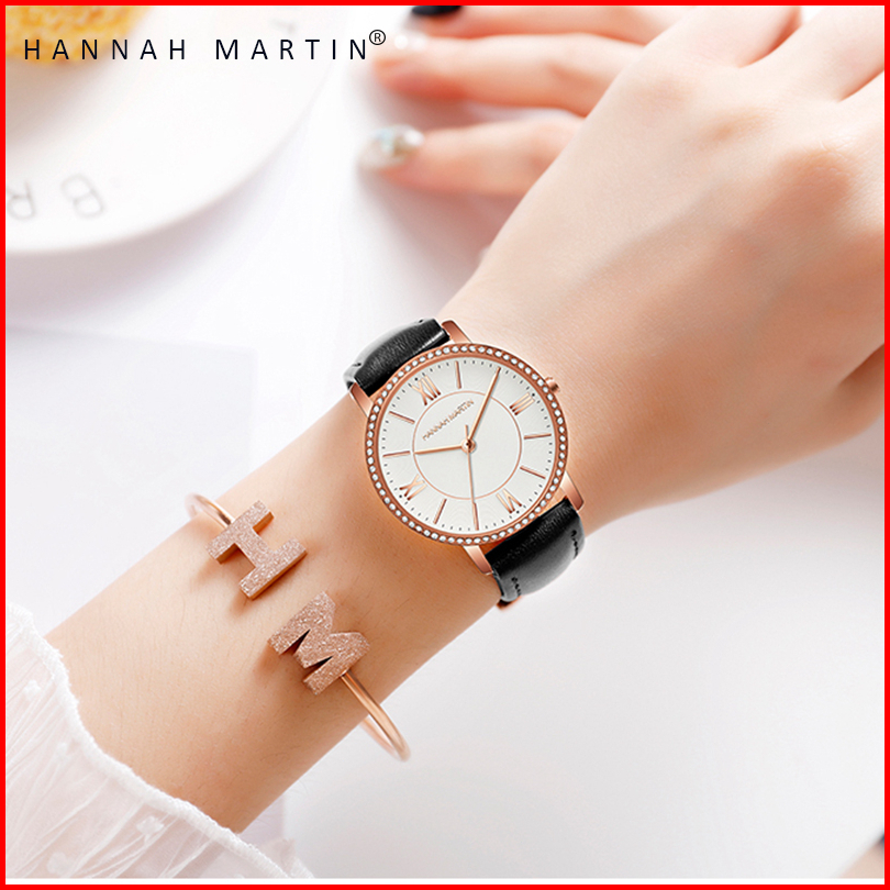 Hannah Martin Jam Tangan Wanita Kulit Angka Romawi Bergaya Klasik Tahan Air Jam Tangan Cewek 1072p