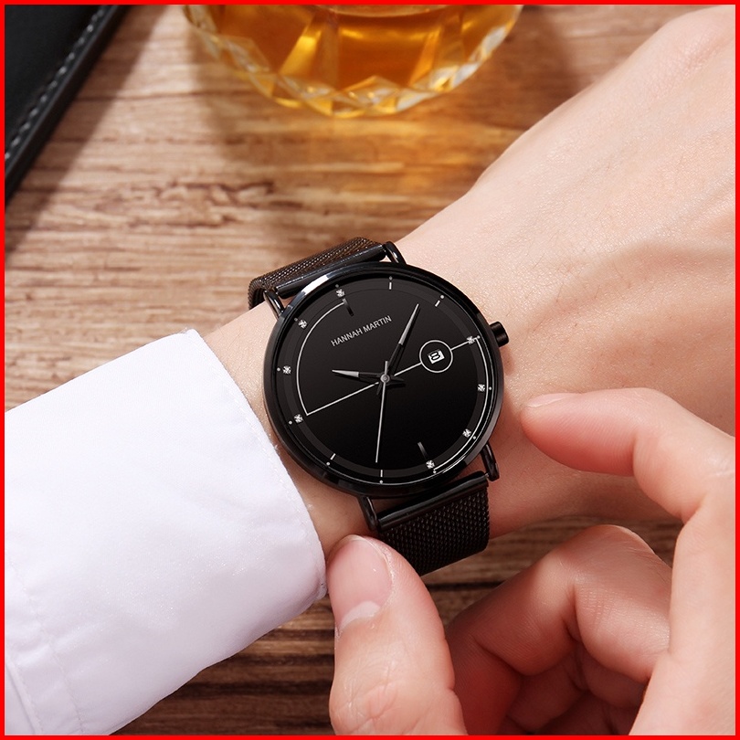 Hannah Martin Jam Tangan Pria Sangat Tipis 100 Original Korea Fashion Cowok Anti Air Quartz Men Watch Arloji 10101