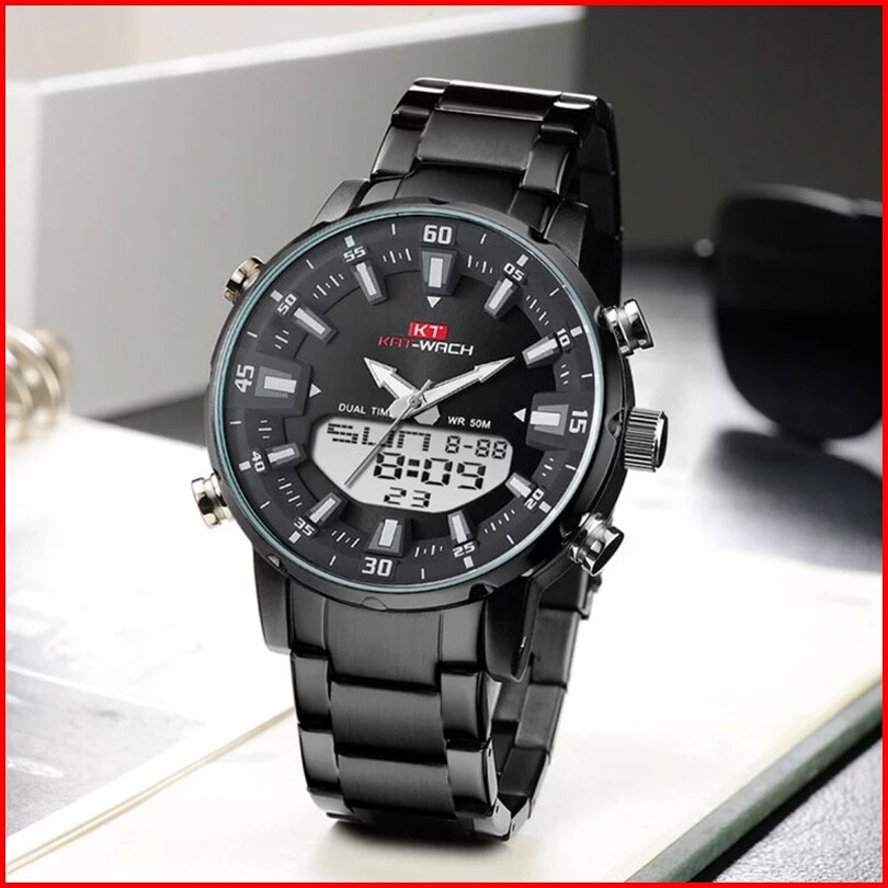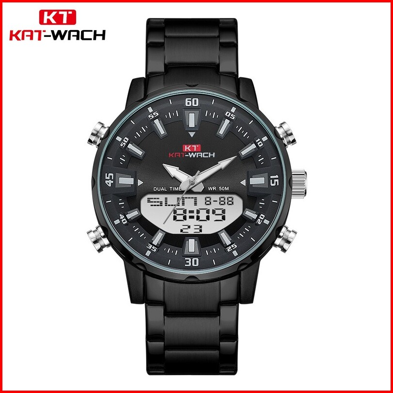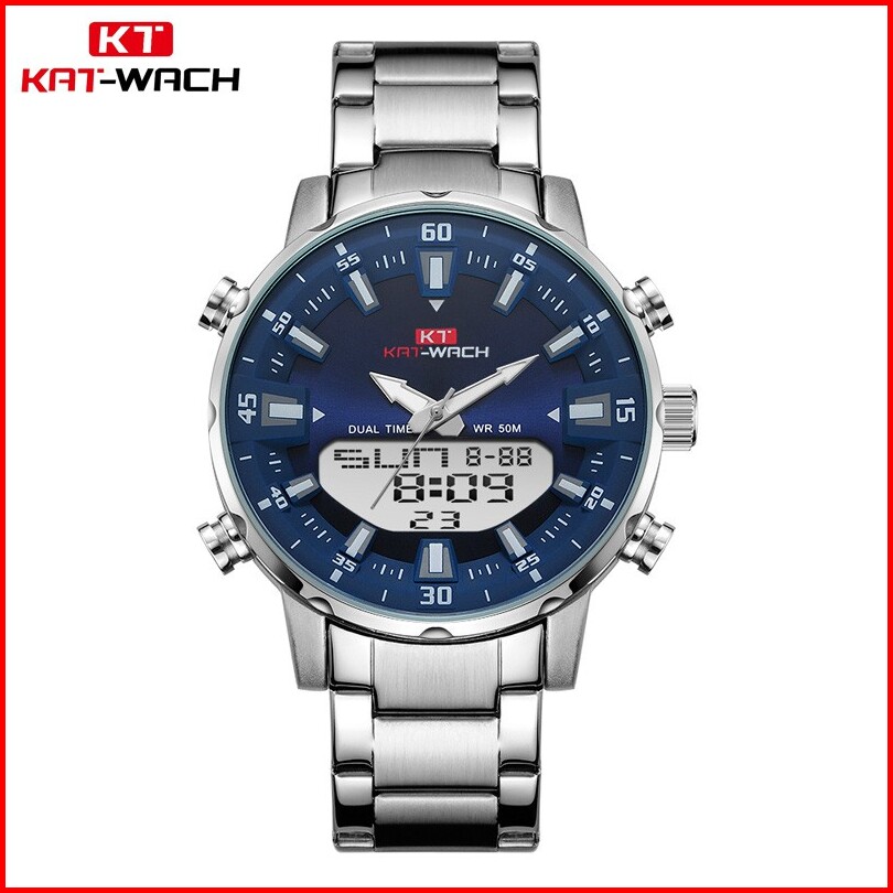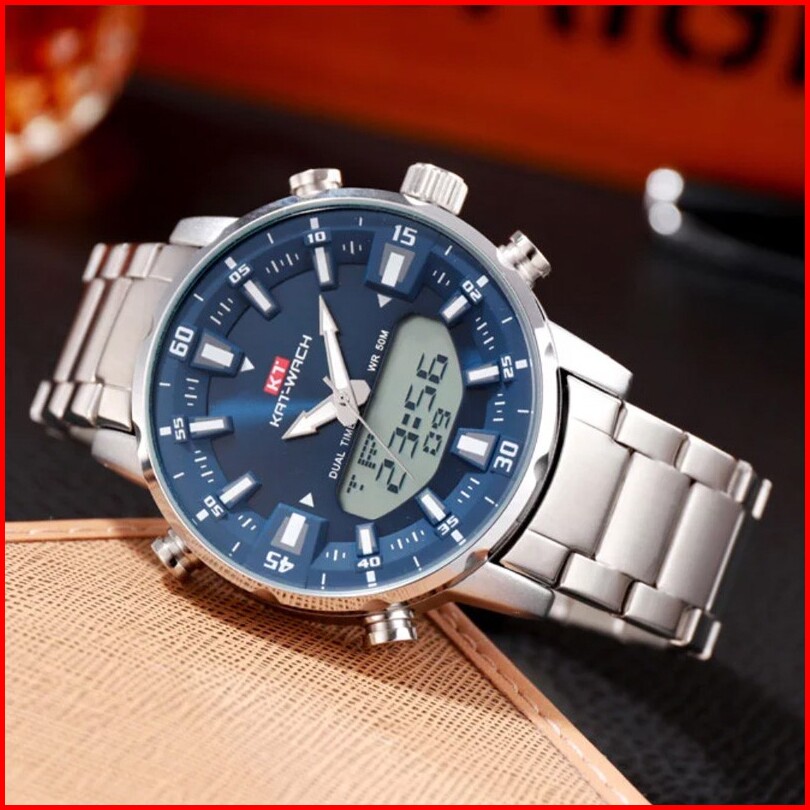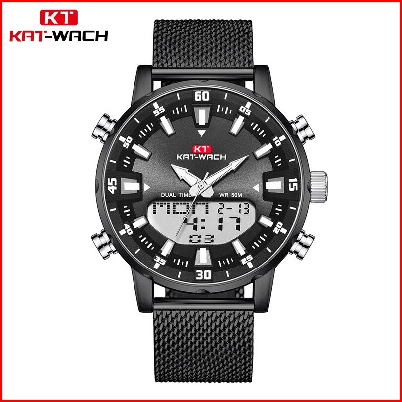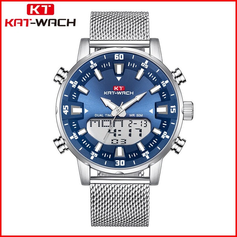 Kat-wach Kt1815 Jam Tangan Pria Digital Analog Tali Stainless Luminous Watchkite Wkos