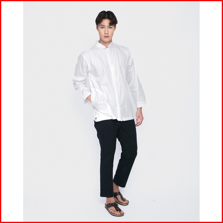 Erigo Koko Long Sleeve Bordir Abbas White - Kemeja Koko Lengan Panjang Unisex