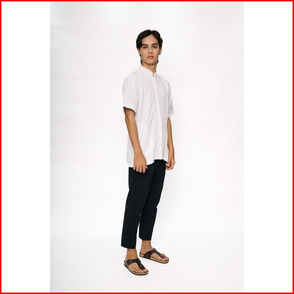 Erigo Koko Short Sleeve Bordir Ghifari White - Kemeja Koko Lengan Pendek Unisex