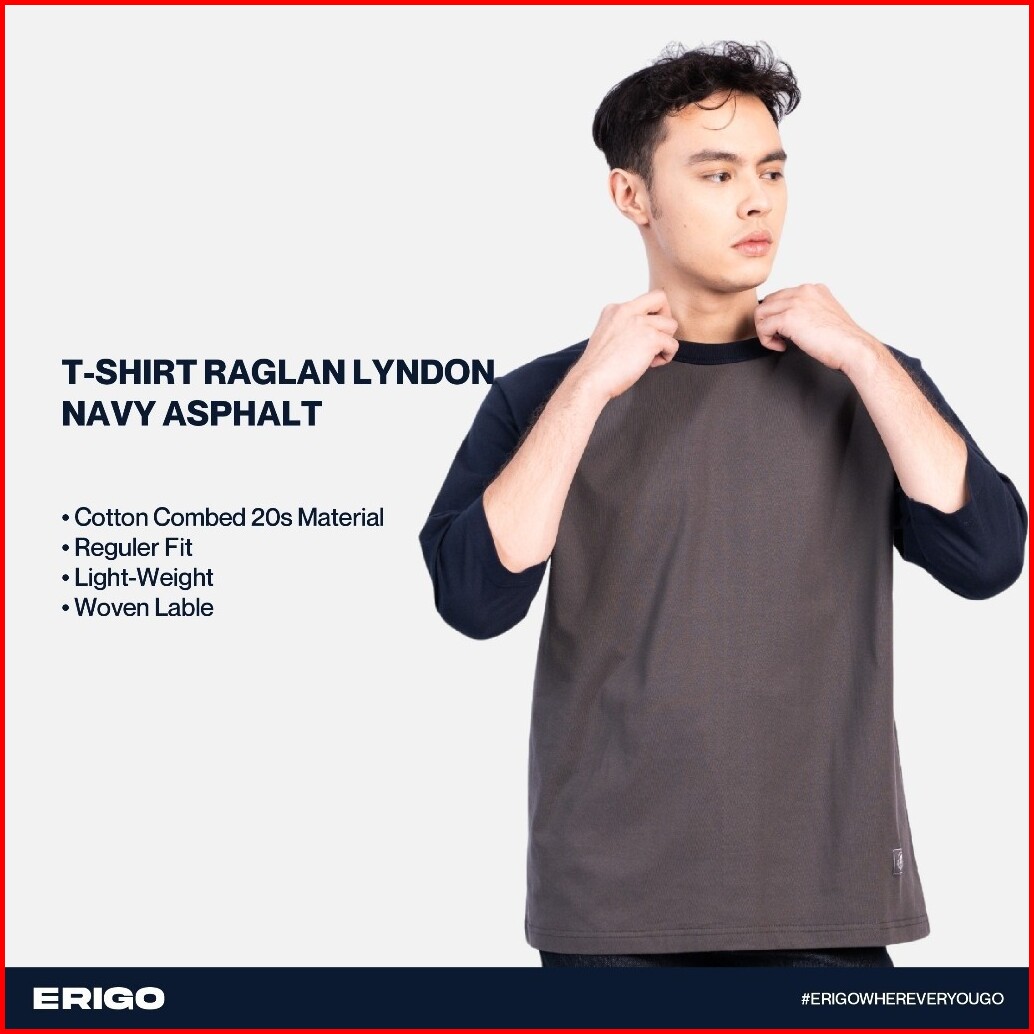 Erigo T-shirt Raglan Lyndon Navy Asphalt Unisex