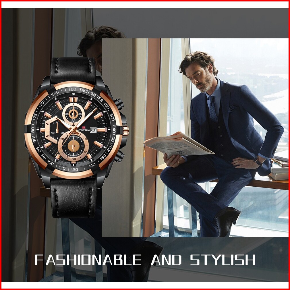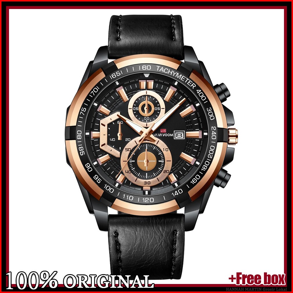 Jam Tangan Pria Vava Voom 100 Original Kronograf Tangan Cowok Kulit Quartz Gift Cowo