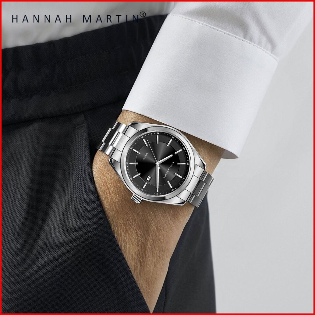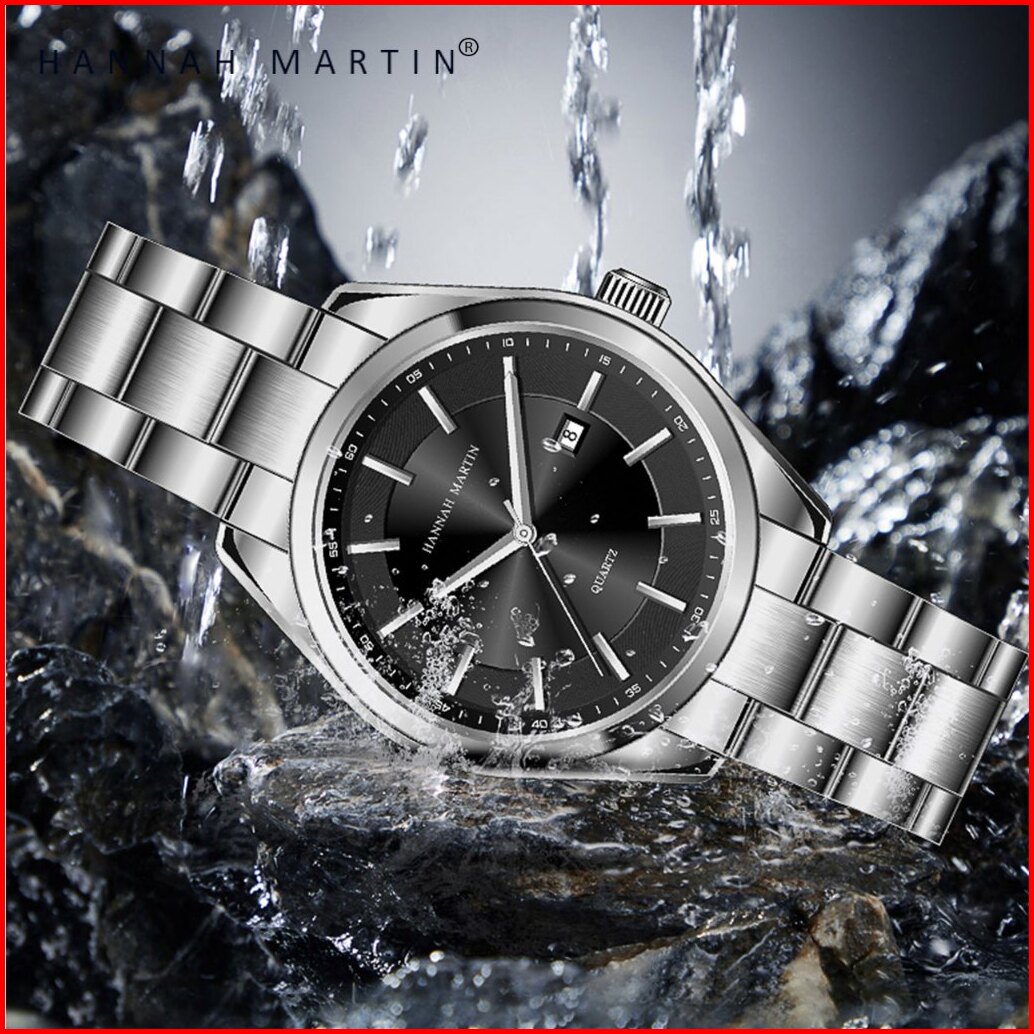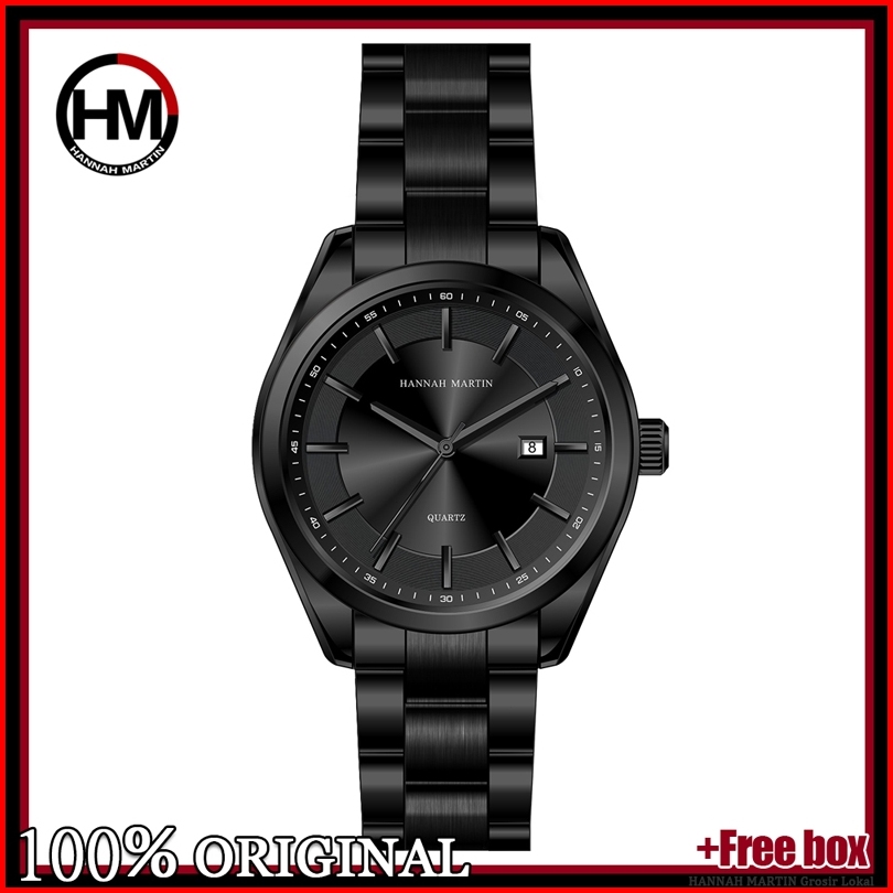 Hannah Martin Jam Tangan Pria 100 Original Business Tanggal Analog Stainless Steel Tahan Air Watch Kotak Gratis
