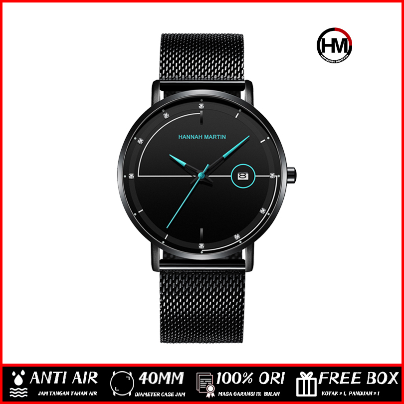 Hannah Martin Jam Tangan Pria Sangat Tipis 100 Original Korea Fashion Cowok Anti Air Quartz Men Watch Arloji 10101