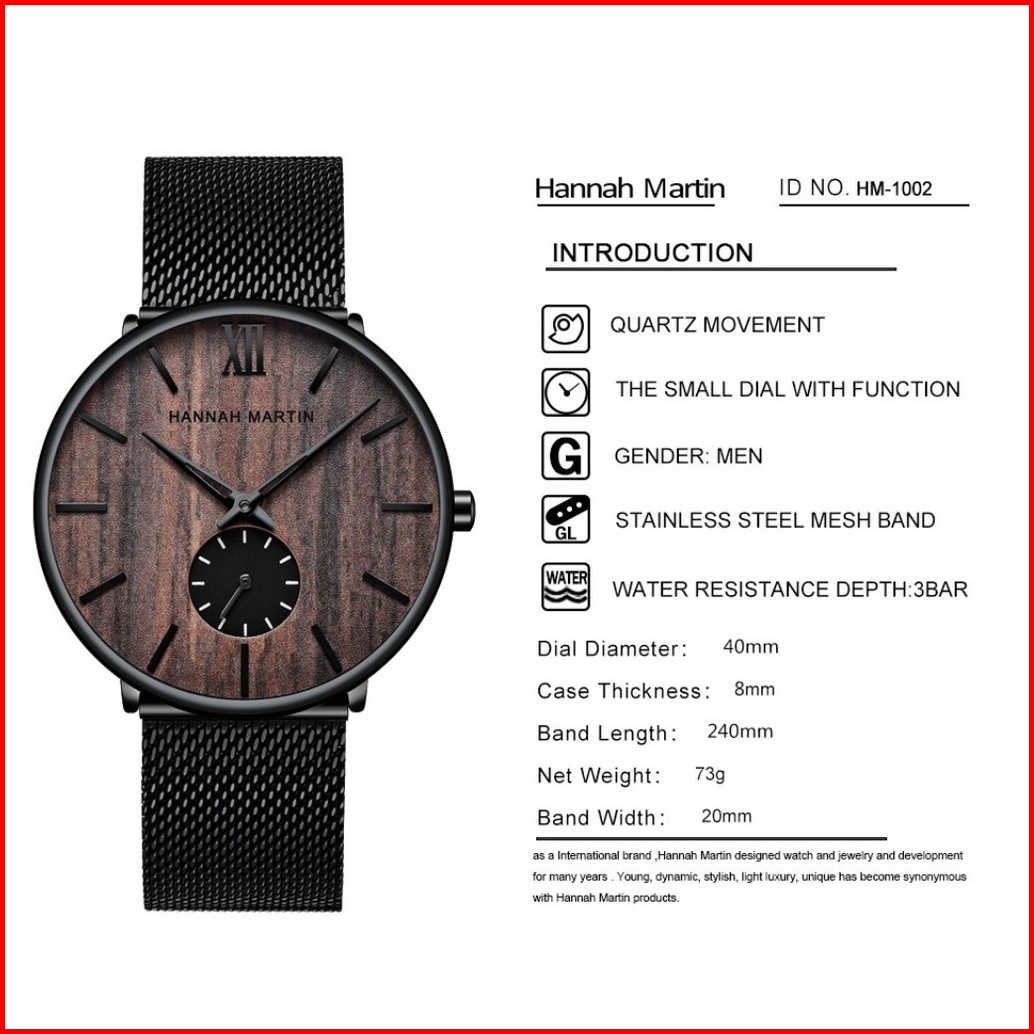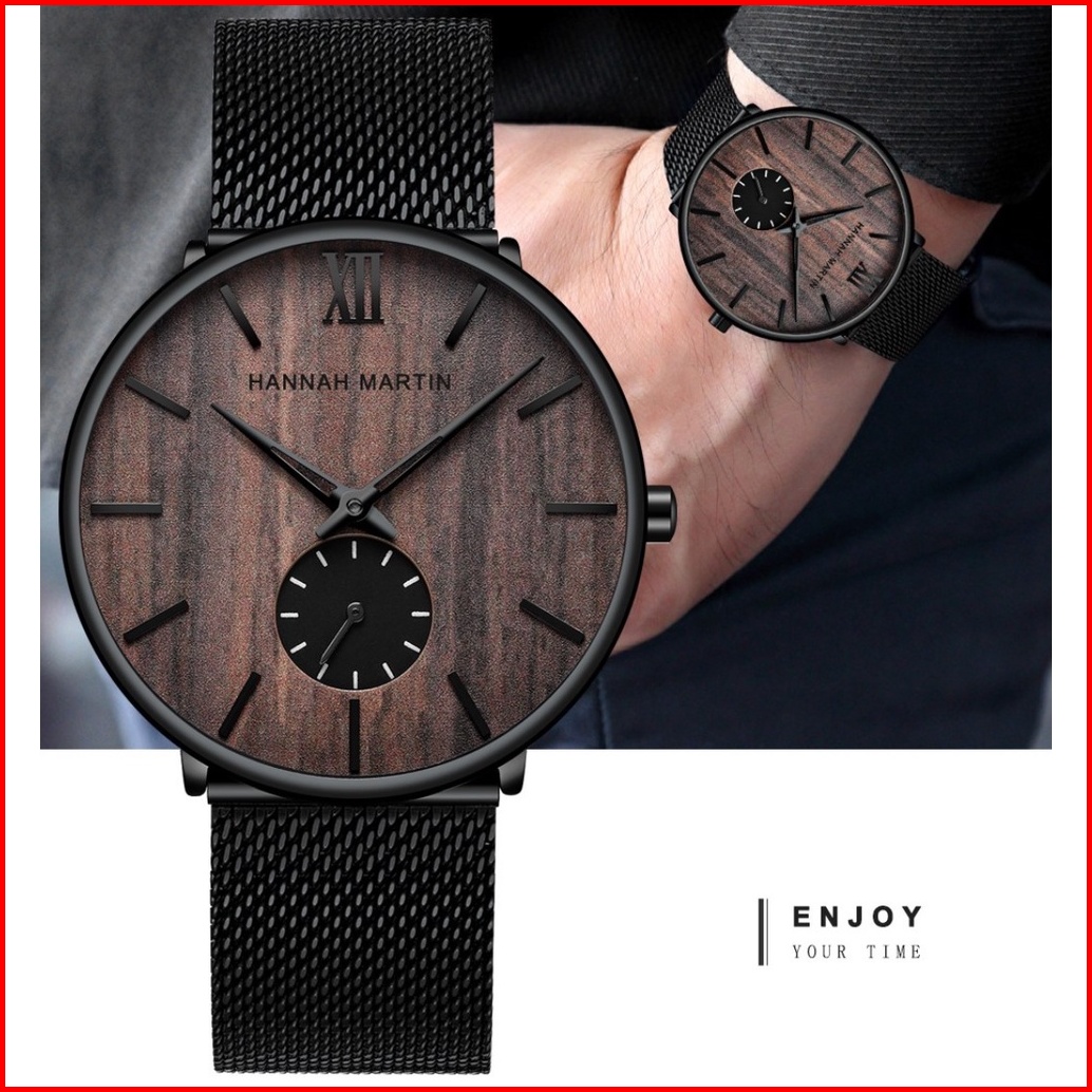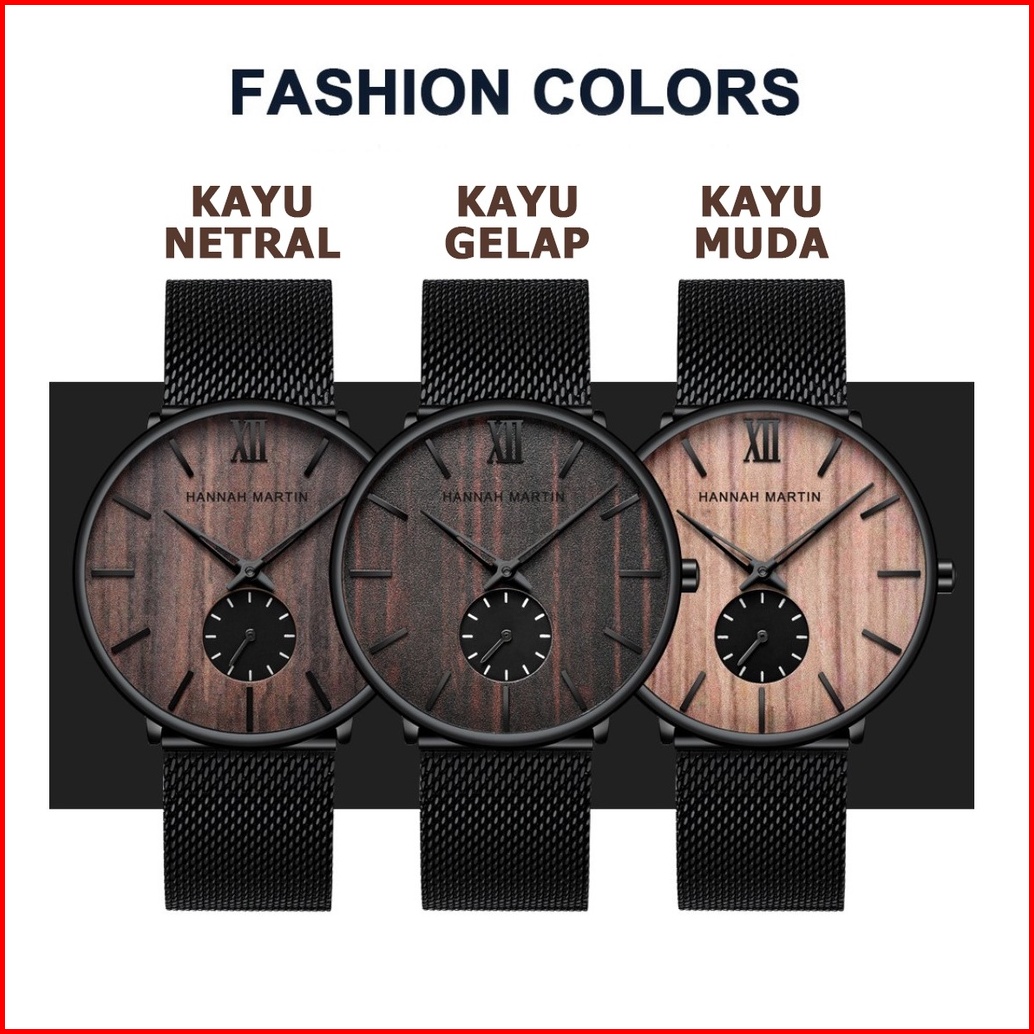 Jam Tangan Pria Kayu Keren Sangat Tipis Hannah Martin 100 Original Korea Fashion Cowok Jam Anti Air Quartz Laki Laki Arl