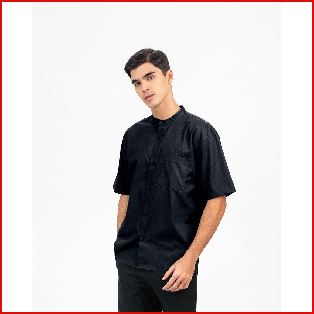 Erigo Shanghai Short Sleeve Basic Fatih Black - Kemeja Koko Lengan Pendek Unisex
