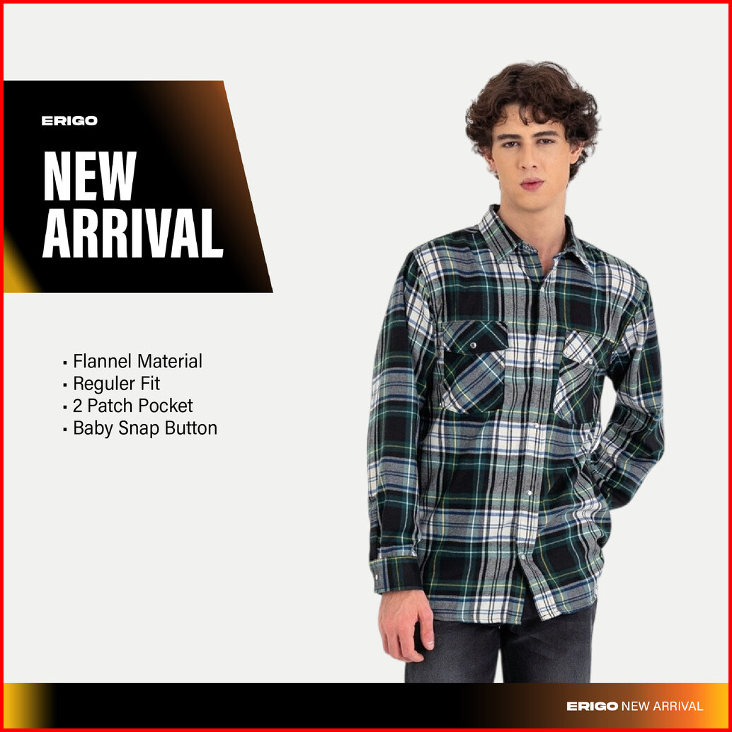 Erigo Flannel Shirt Nero Emerald - Kemeja Lengan Panjang Flannel Unisex