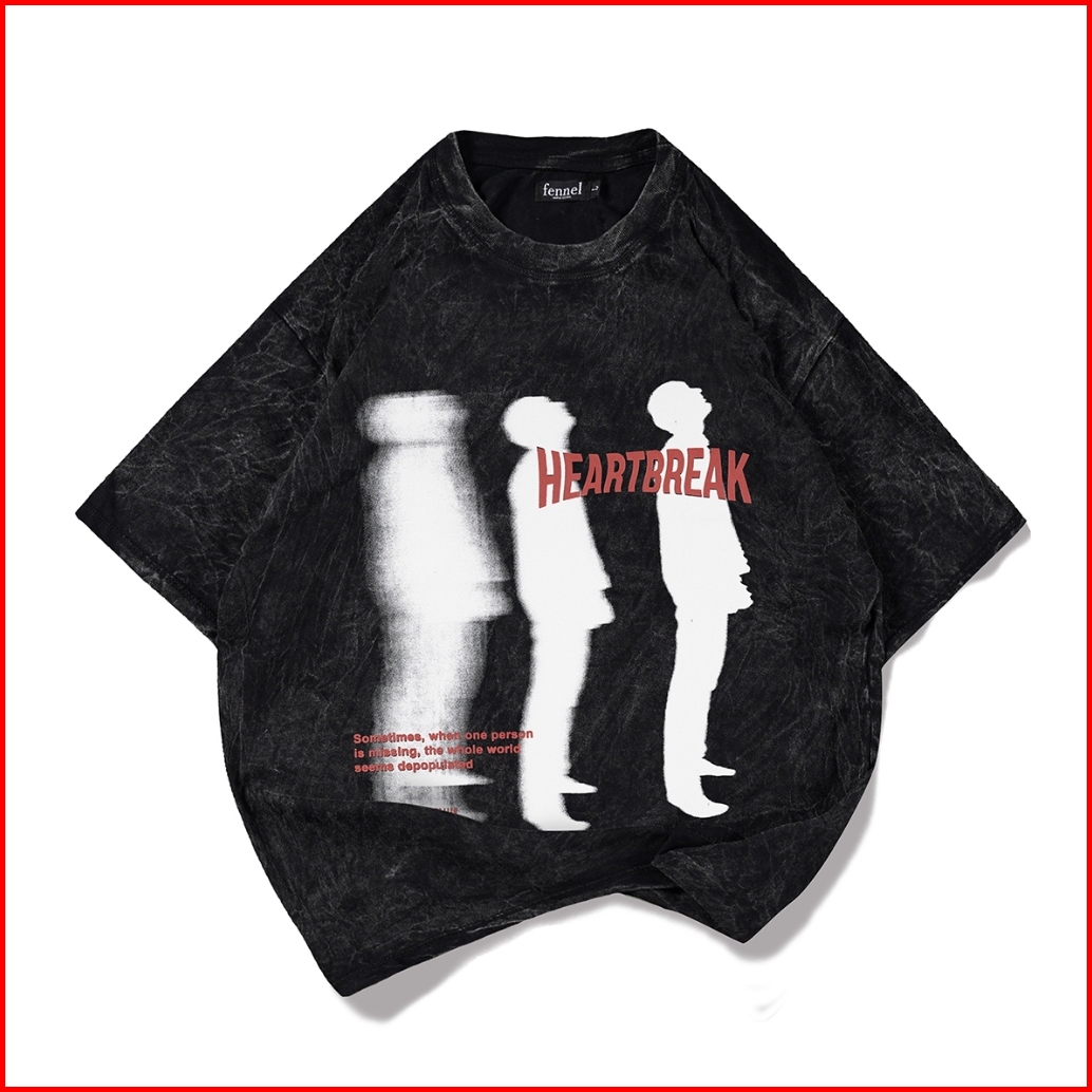 N01578 T-shirt Oversized Distro Wash Motif Heartbreak Tna