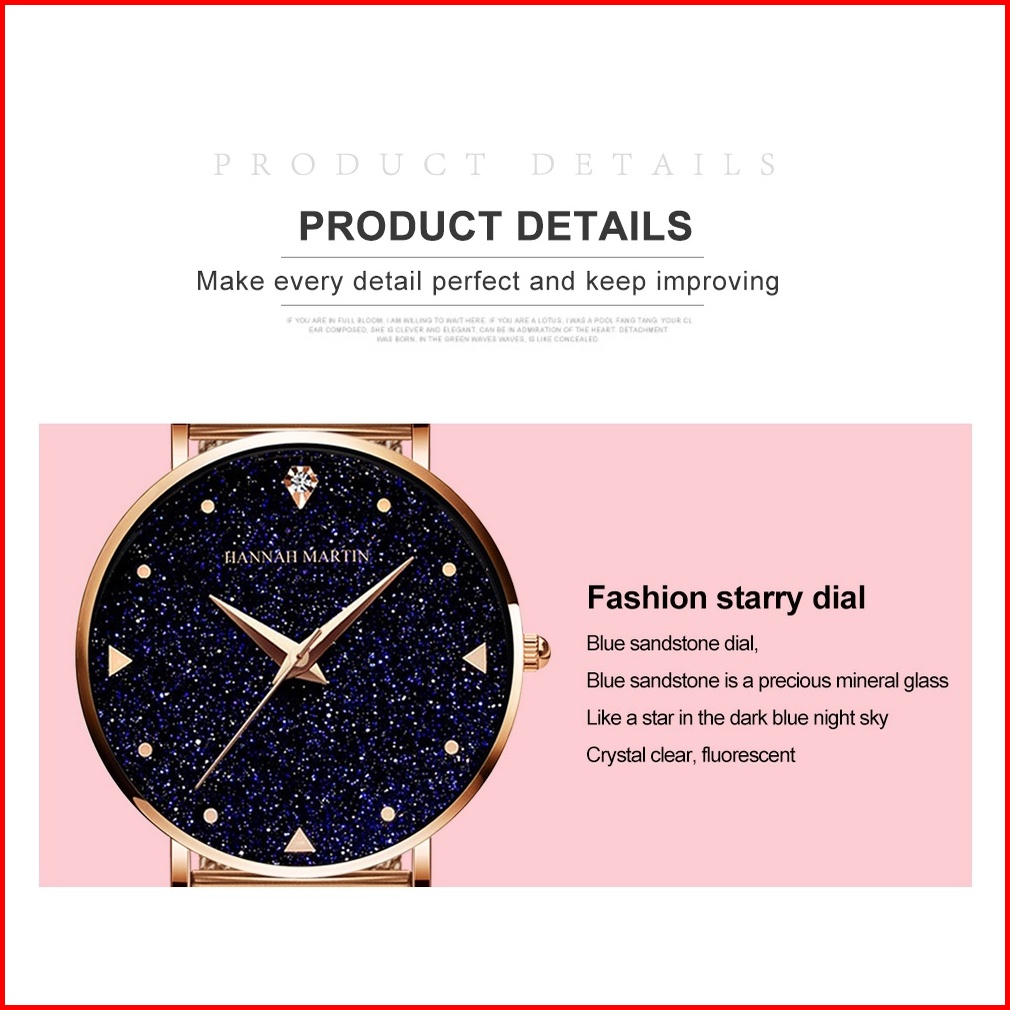 Jam Tangan Wanita Hannah Martin 100 Original Tahan Air Cewek Quartz Arloji Cewe Tangan Gift