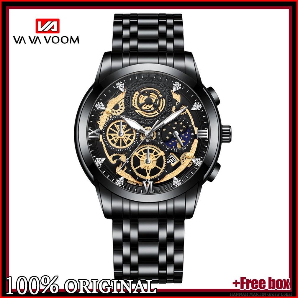 Jam Tangan Pria Vava Voom 100 Original Tanggal Tangan Kronograf Cowok Quartz Analog Kulit Gift Cowo