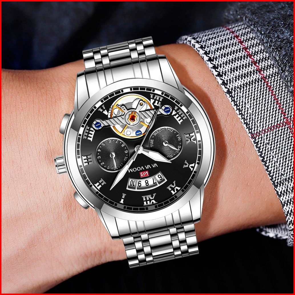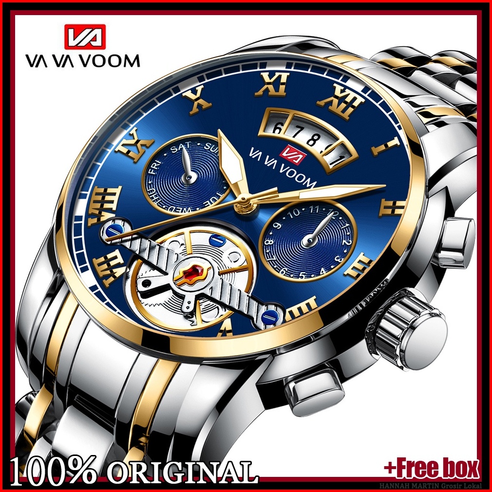 Jam Tangan Pria Vava Voom 100 Original Tanggal Luxury Stainless Steel Cowok Quartz Laki Gift