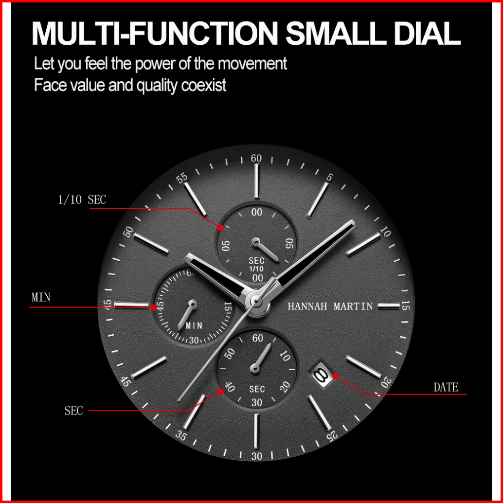 Hannah Martin Jam Tangan Pria 100 Original Kronograf Tahan Air Cowok Quartz Analog Laki 109g