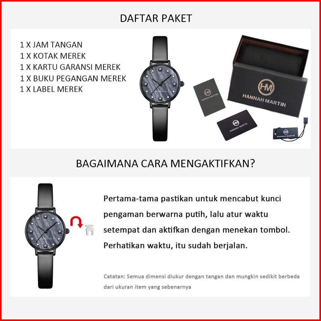 Hannah Martin Jam Tangan Wanita 100 Original Kecil Cantik Mode Anti Air Tahan Elegan Analog Keren Rose Hitam Women Watch