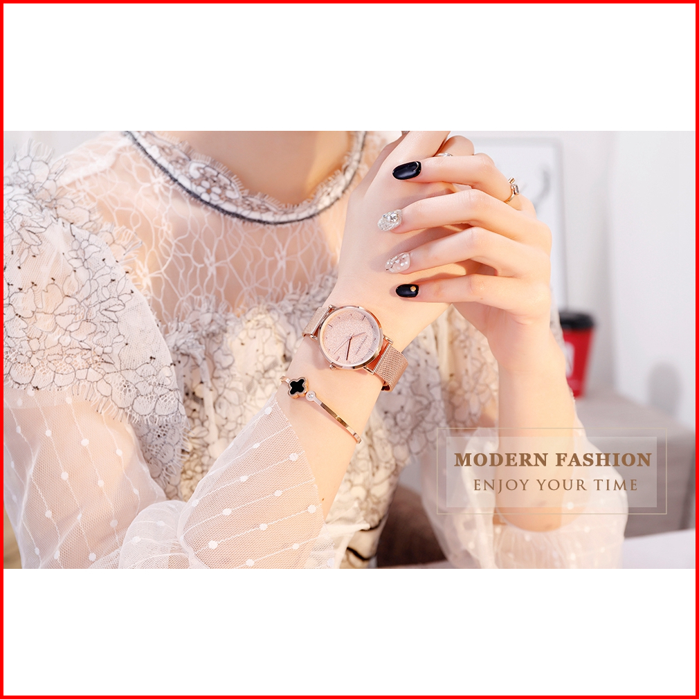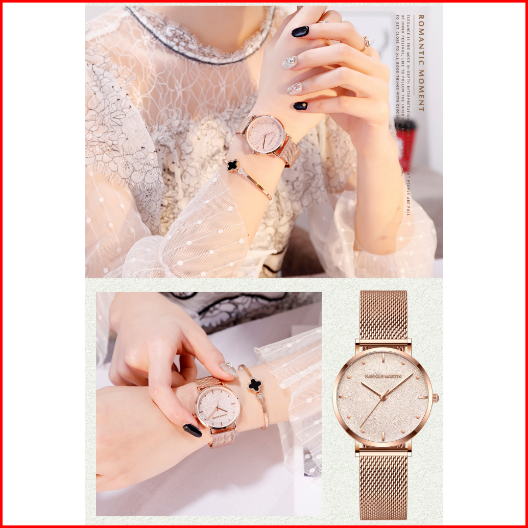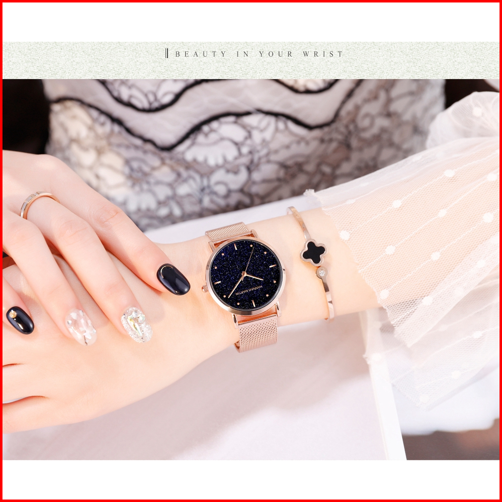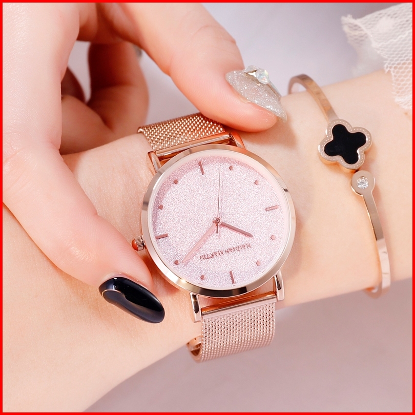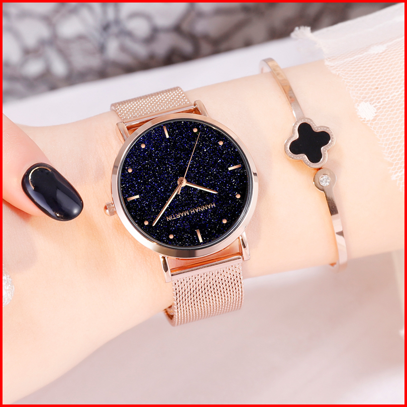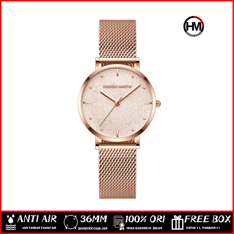 Hannah Martin Jam Tangan Wanita Mode Display Kuarsa Tali Jala Tahan Air Jam Tangan Cewek Ms36