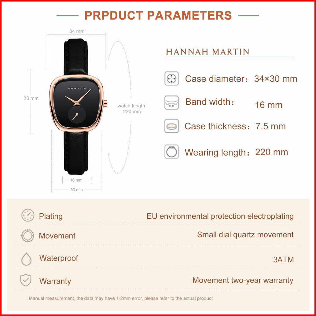 Hannah Martin Jam Tangan Wanita Mode Bisnis Display Kuarsa Kulit Tahan Air Jam Tangan Cewek 1251p