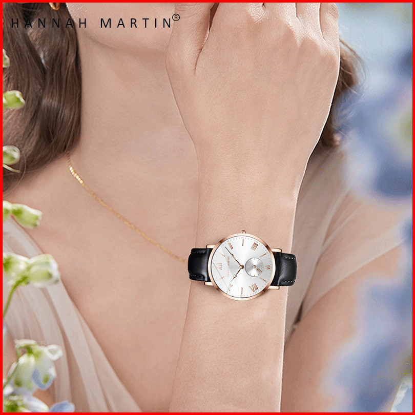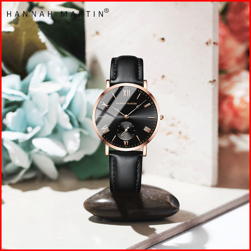 Hannah Martin Jam Tangan Wanita 100 Original Keren Anti Air Branded Tahan Air Tali Kulit Kuarsa Arloji 1391