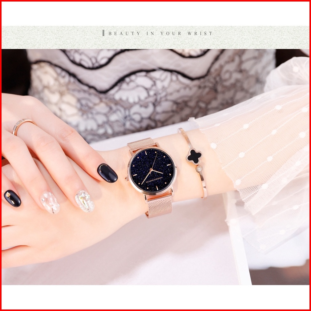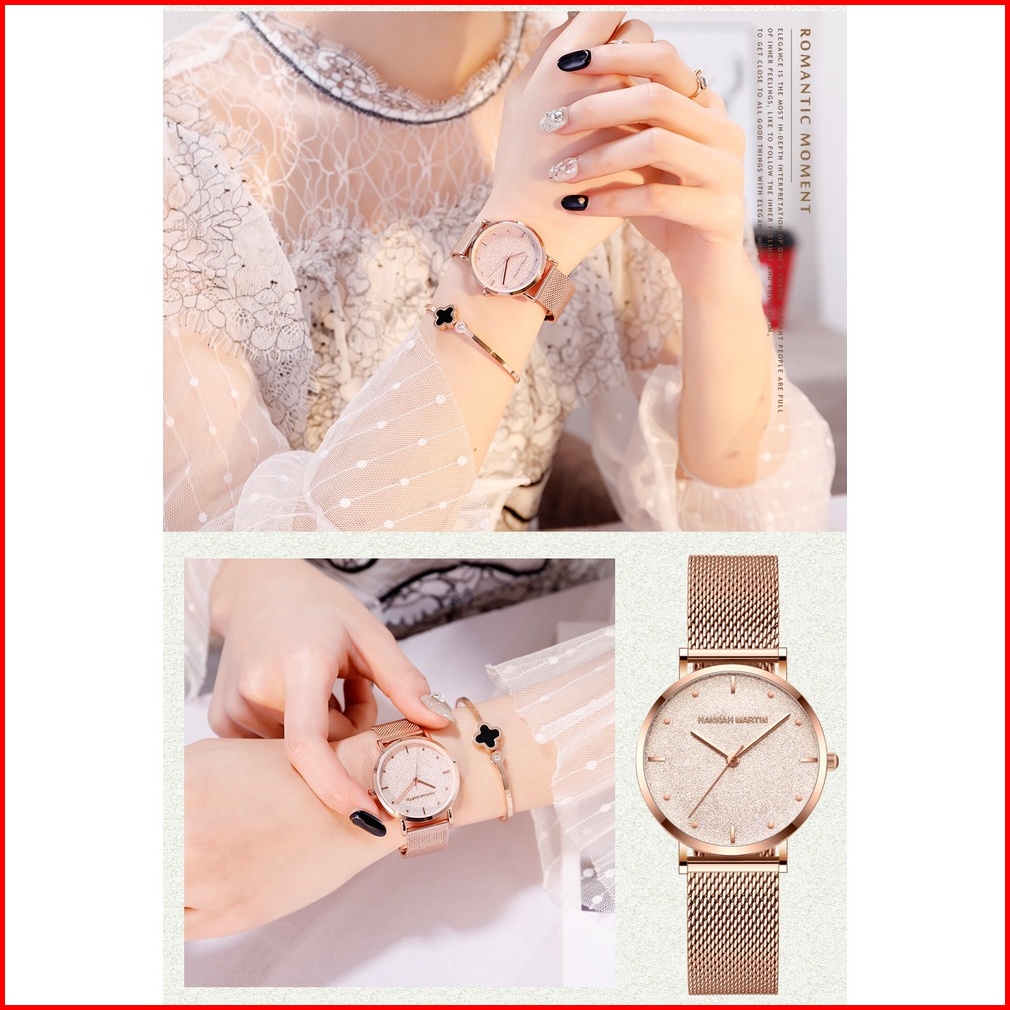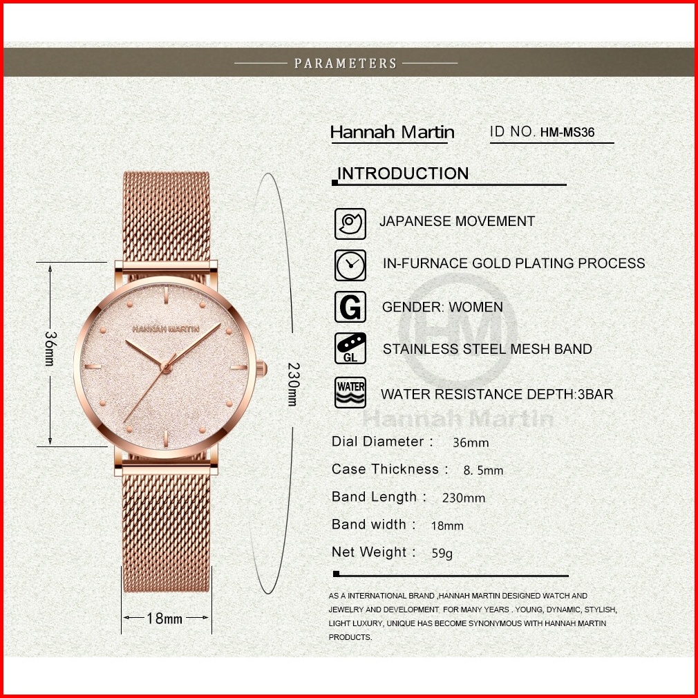 Hannah Martin Jam Tangan Wanita Mode Bisnis Display Kuarsa Tali Jala Tahan Air Jam Tangan Cewek Ms36
