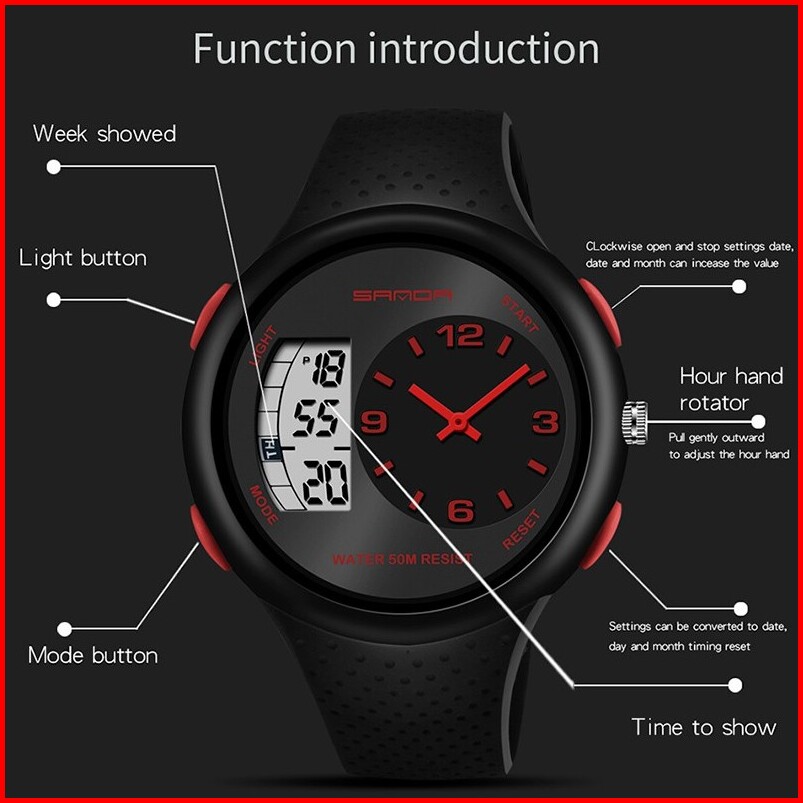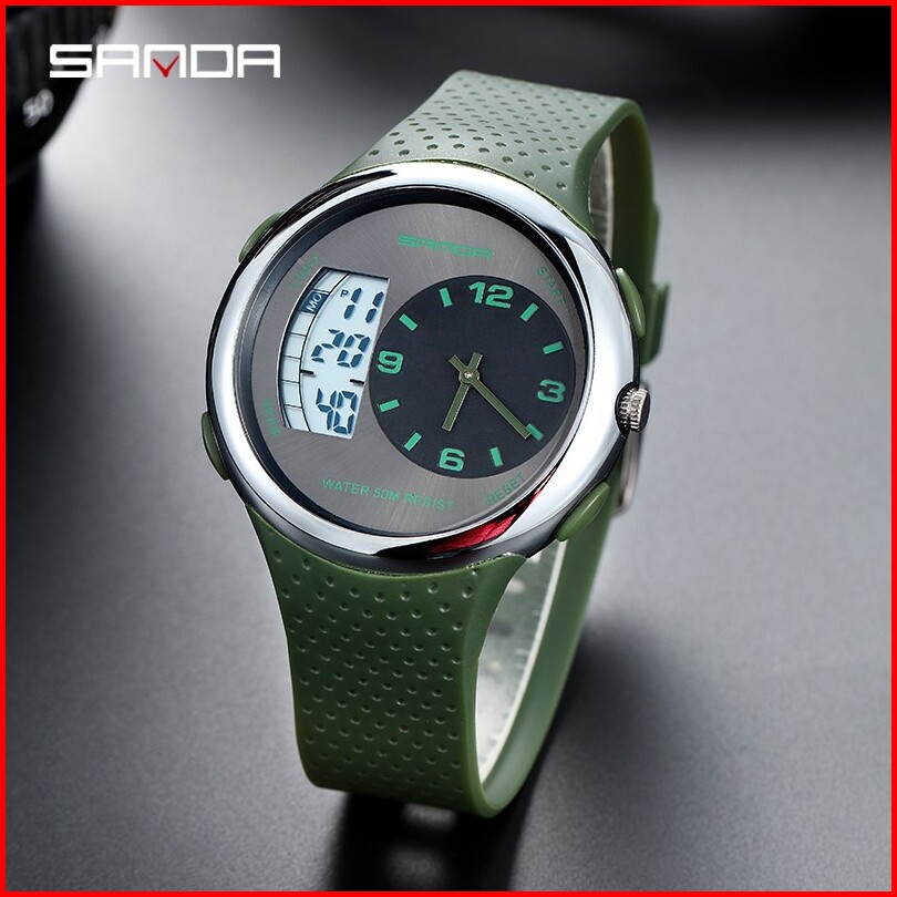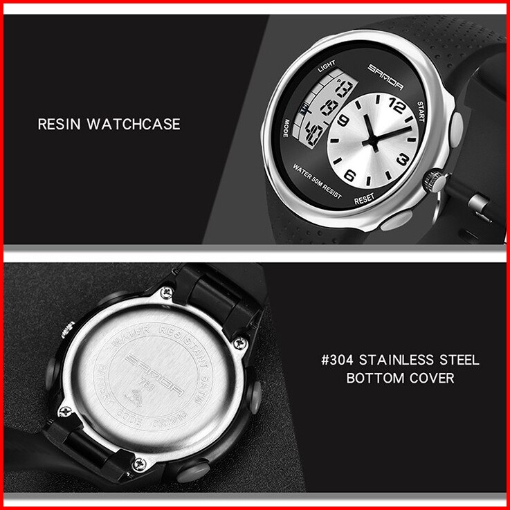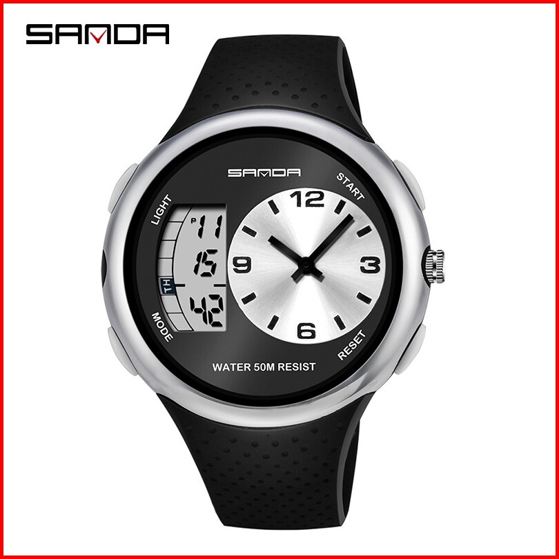 Sanda 763 Jam Tangan Pria Digital Analog Tali Rubber Chronograph Anti Air Watchkite Wkos