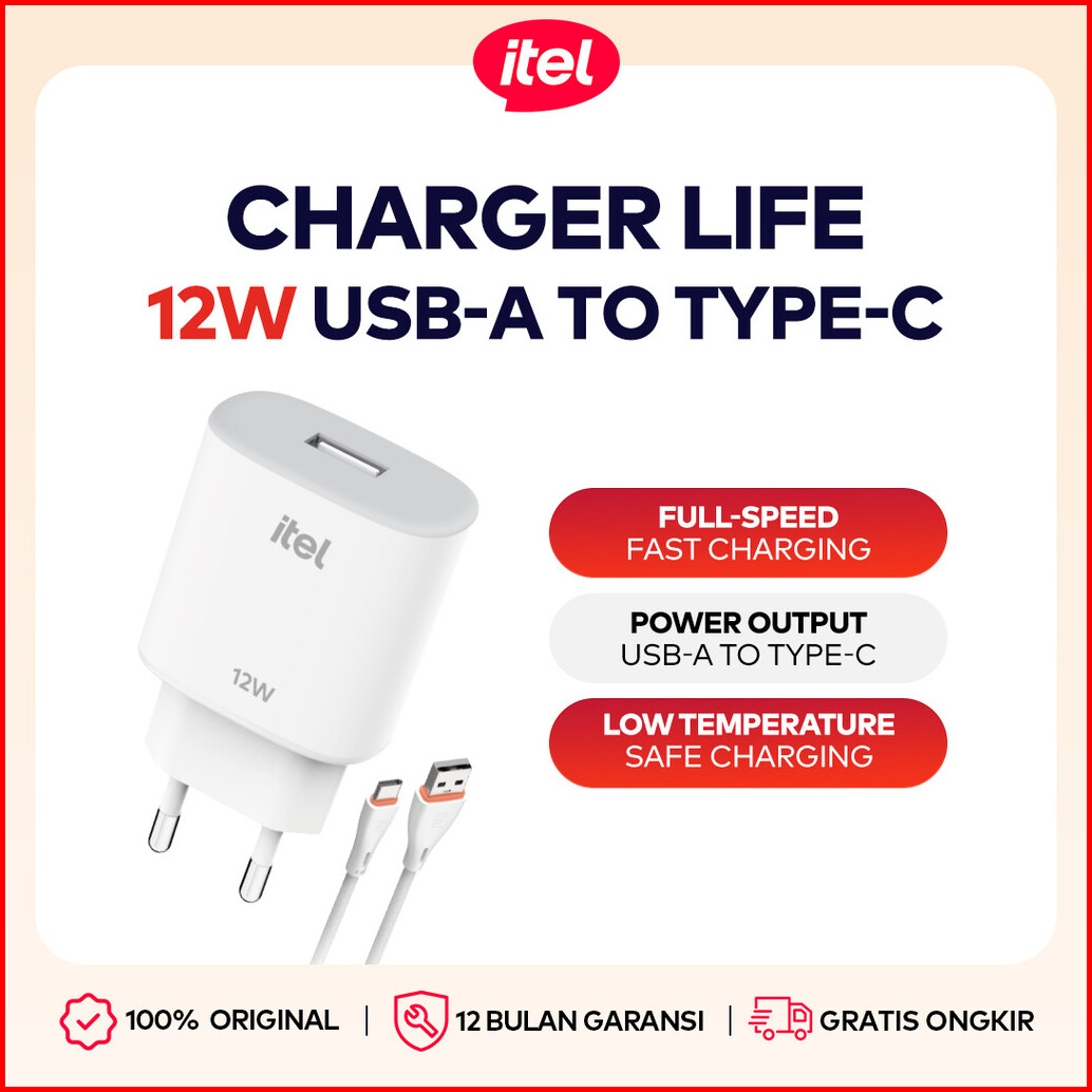 Itel Icw-121ec Charger 12w Kepala Kabel Usb-a To Type-c Fast Charging Travel Adapter White 2a Kepanjangan 1 Meter White