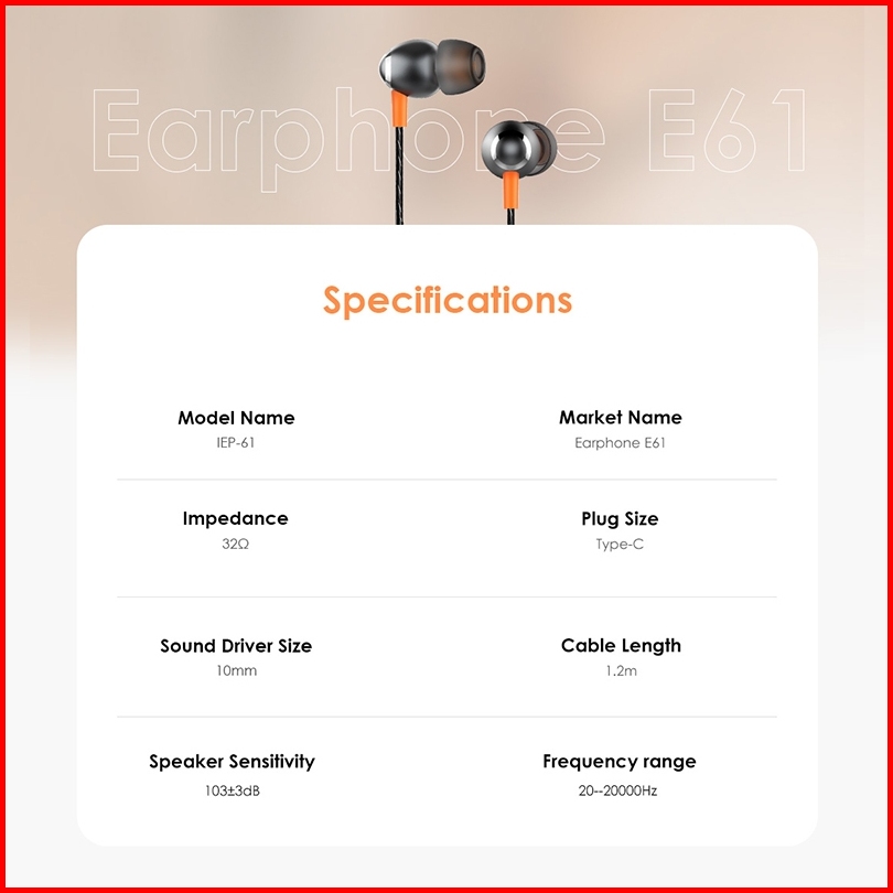 Itel Iep-61 Type-c Input Wired Earphone Super Bass Gaming In Ear Headset Android Original