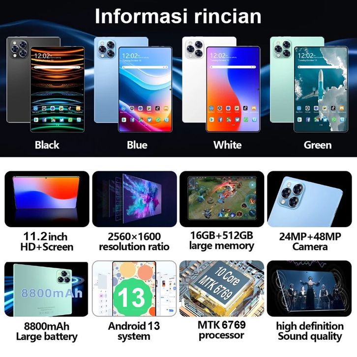 Tablet Baru 11,6 Inci Pro11 Belajar dan Hiburan Kantor Super Tipis SIM/WiFi Komputer Label Tablet Murah Android