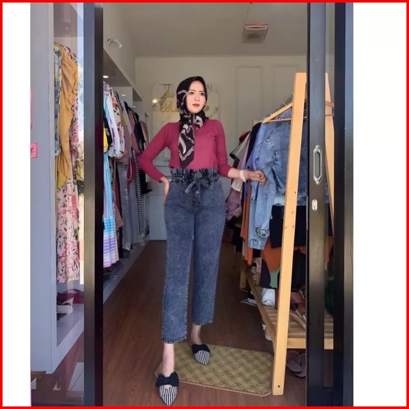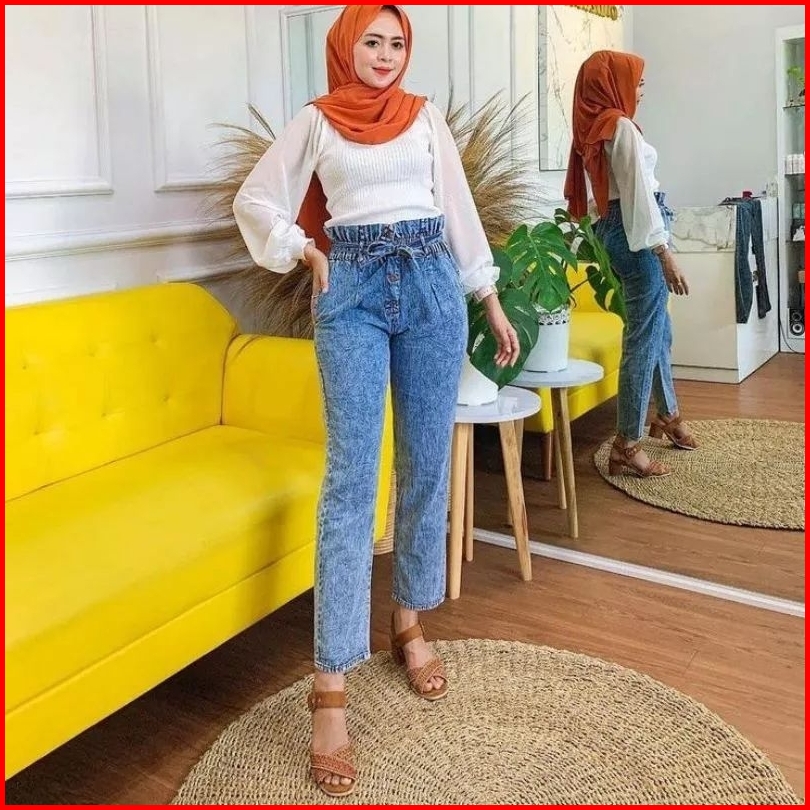 Highwaist Baggy Jeans M L Xl Xxl Celana Jeans Highwaist