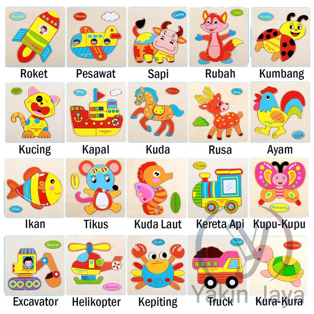 (FLASH SALE) Puzzle Kayu Hewan Kartun Mainan Edukasi Anak Wooden Puzzle Toys