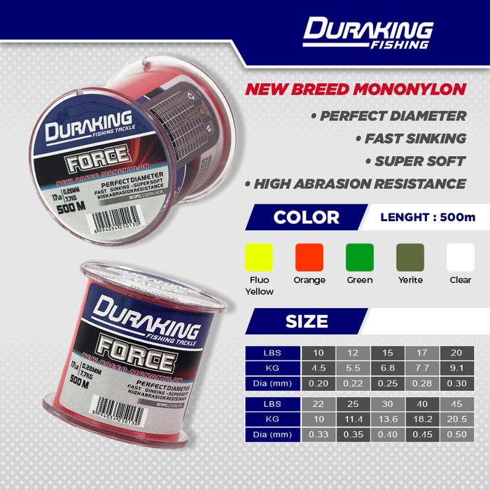 Senar Pancing Duraking Force 500 M Fishing Line Mono - Single Pack - Clear 025 mm