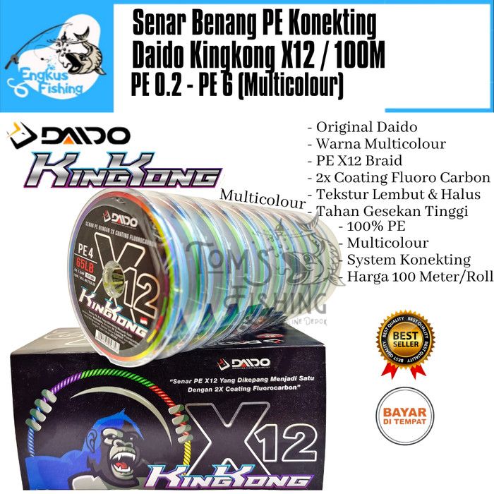 Senar Pancing Senar Benang Pancing PE DAIDO KINGKONG X12 100 Meter Konekting PE 0.2 - PE 6 Murah - Engkus Fishing - PE