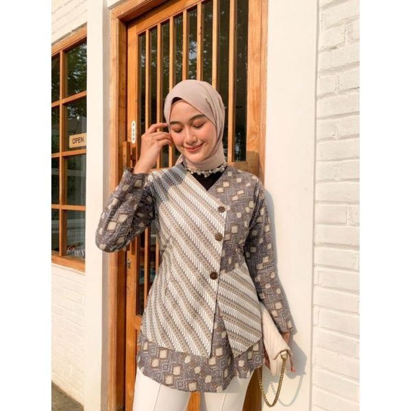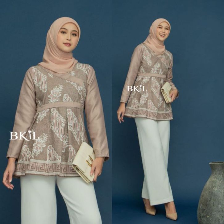 Blouse Batik Wanita Modern Kombinasi Liris Bahan Katun Prima Halus Stylish Dan Fashionable Berkualitas