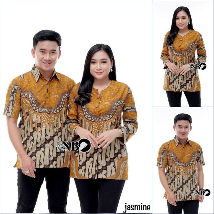 Baju Batik Couple Jasmine M L XL XXL Atasan Pria Wanita Kantor Pesta Kondangan Berkualitas Premium Berkualitas